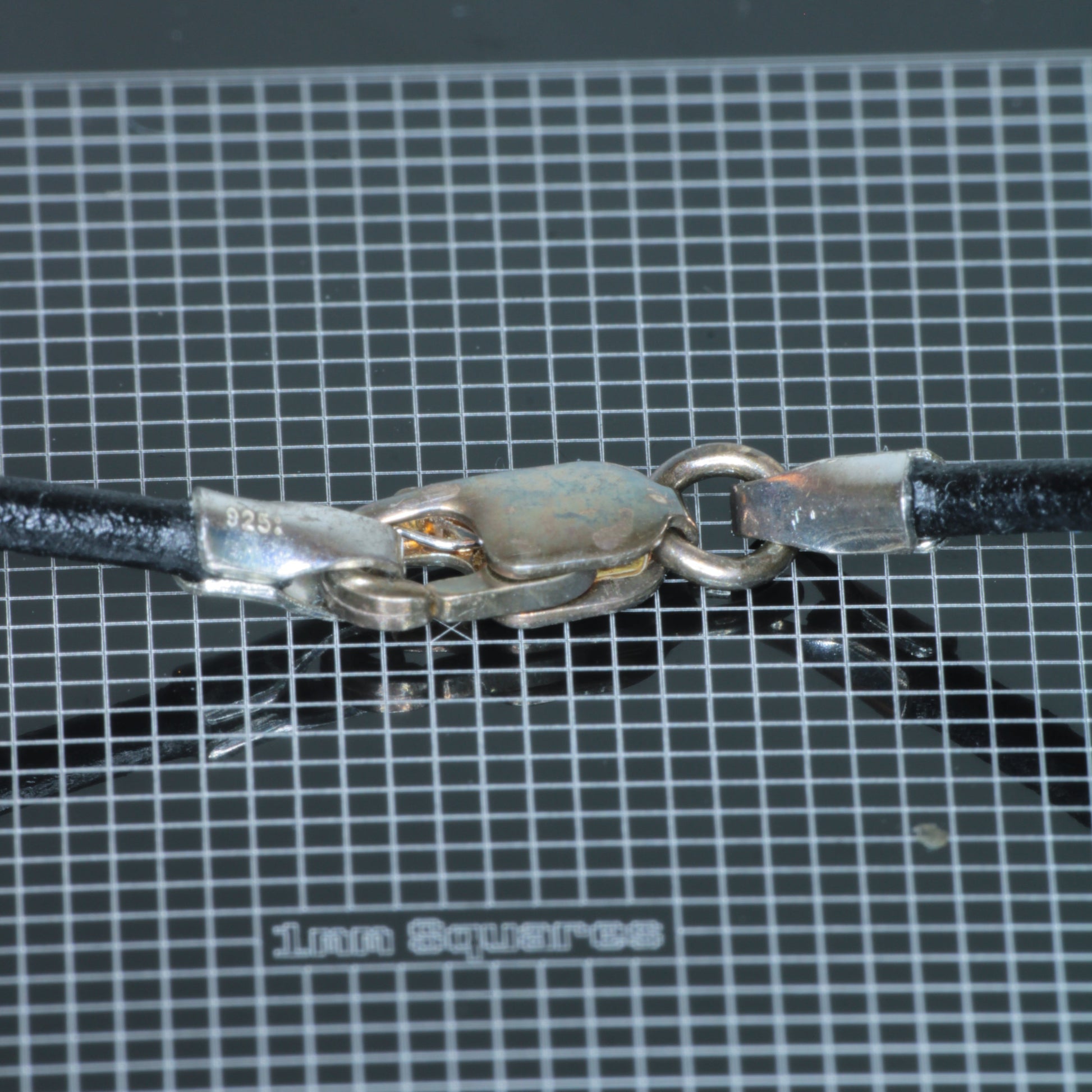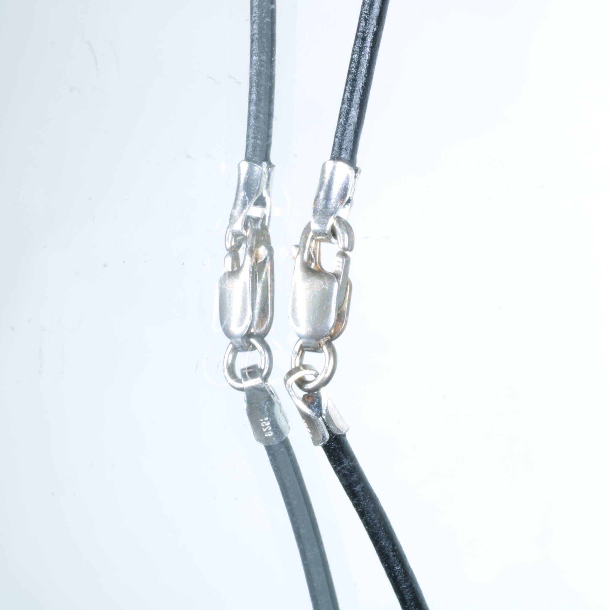 This is a minimalist black leather cord with a sterling silver clasp, perfect for hanging a pendant on. The 18 inch cords are a good length for anyone to wear, not too long, not too short.