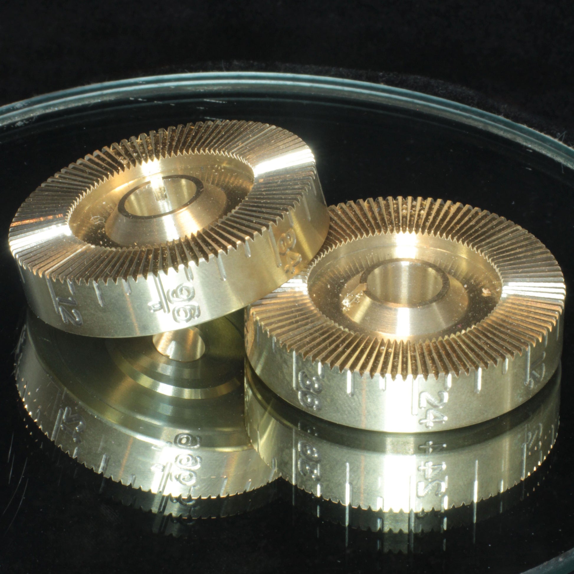 Index gears are used to set the rotational angle while faceting. The number of teeth on the index gear controls the type of symmetry you can cut into your stone. The default is a 96 degree which allows for most classic cuts but does not have 5-fold, 7-fold or 9-fold symmetry. This limits what you can cut on it. For instance a D20 cut has 5-fold symmetry and an 80 degree gear is needed to cut it.