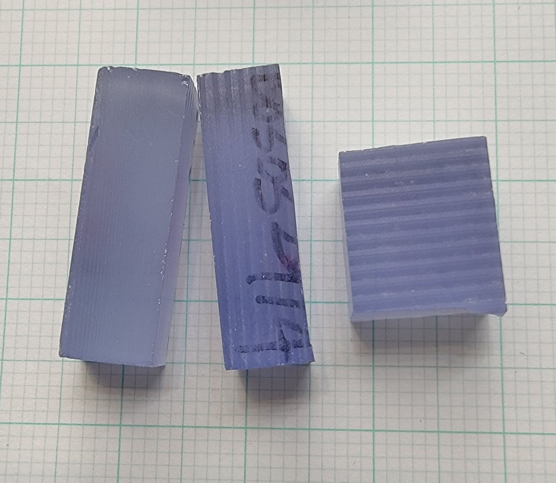 We finally got some blue sapphire! While sapphire is commonly used in some scientific applications, usually it is either pink (titanium laser sapphire) or colorless (for high end durable screens)--we've previously found a small amount of industrial blue likely used for high medical filter lenses, but this newer stock was likely grown for use in ultra high end solid sapphire watch cases.