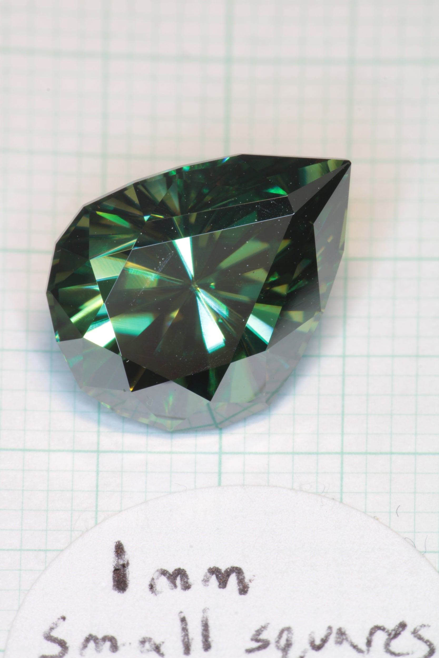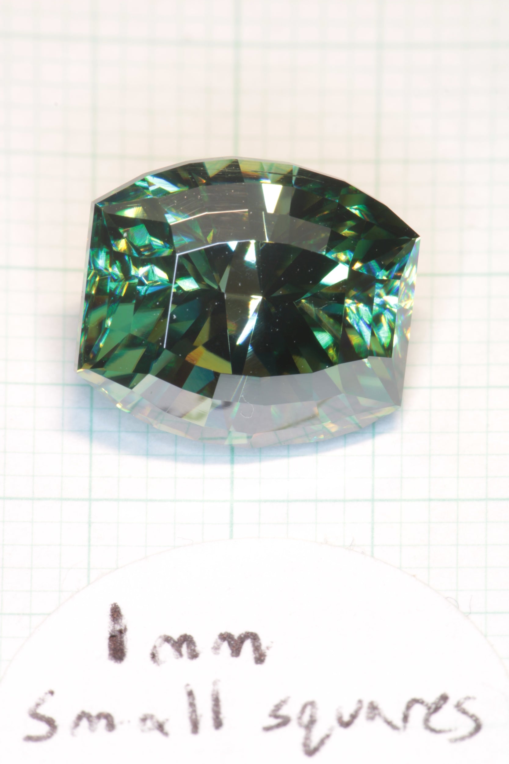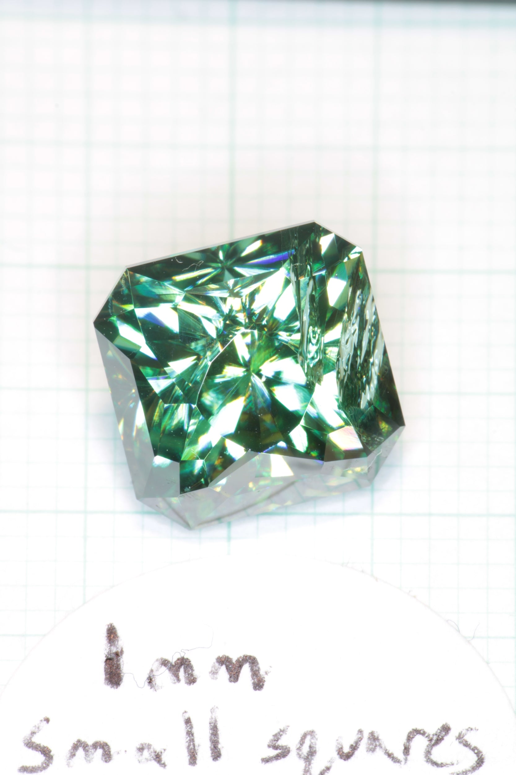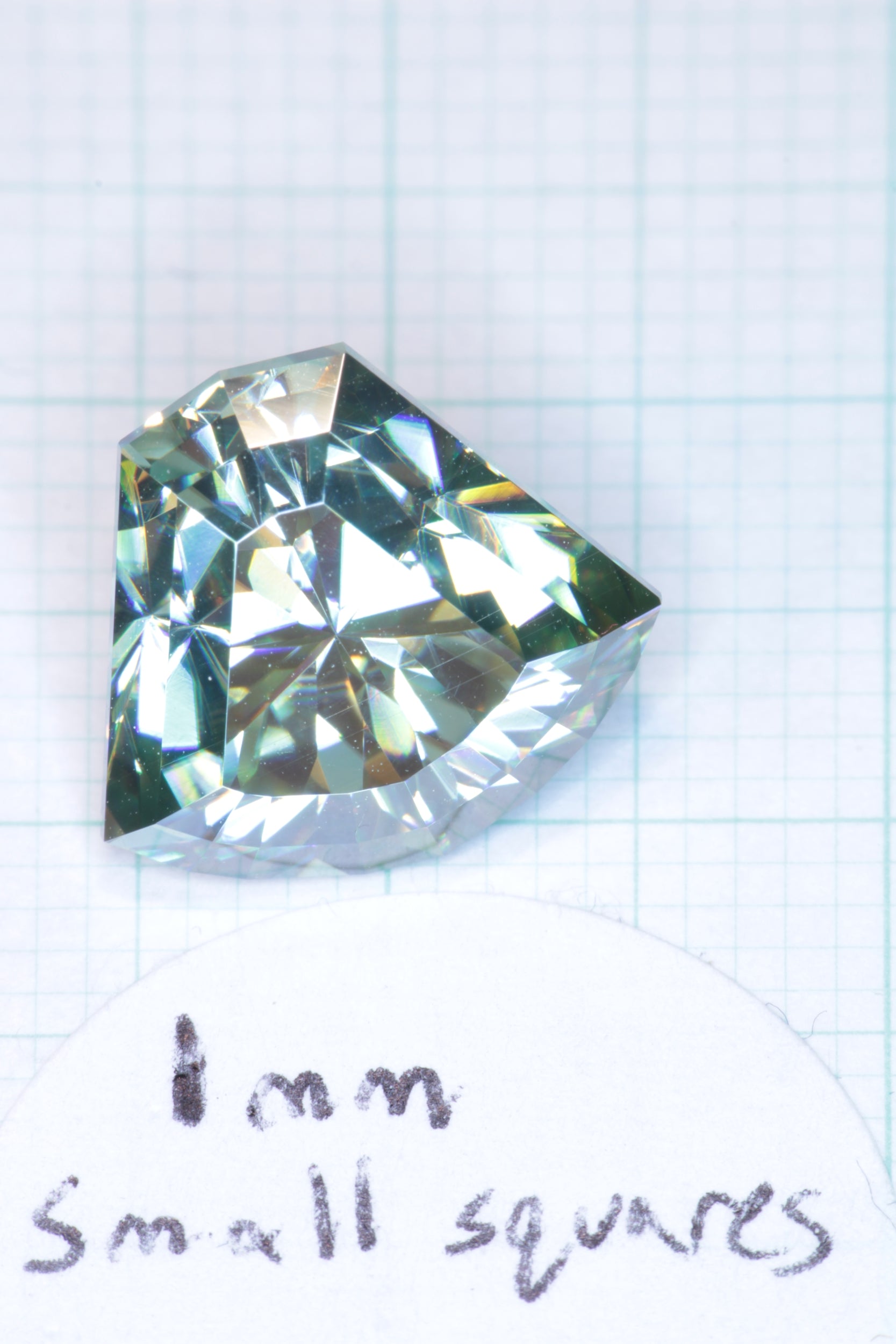 Though it is well known in the gem world it is also highly valued in the world of science and industry. It is a semiconductor just like pure silicon but far more durable and heat-resistant, so it is used to make computer chips that need to endure high stress environments like in a car engine. Fortunately for us these uses require very exacting standards and sometimes crystals are rejected. These crystals had growth defects and atmospheric contamination, resulting in hollow needles and carbon clusters which ruined them for semiconductor usage but left enough clean zones (after extensive trimming) to facet brilliant gems.