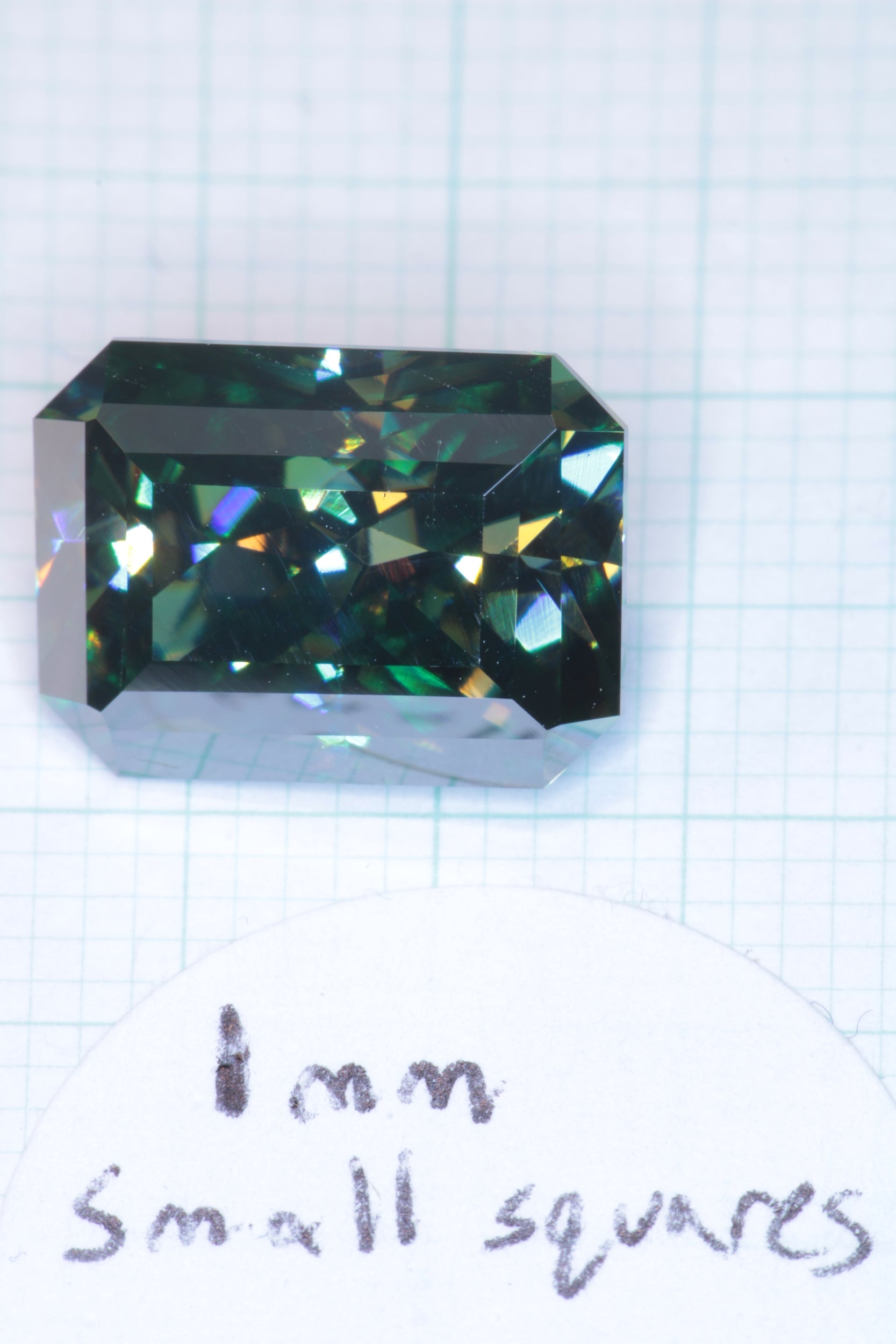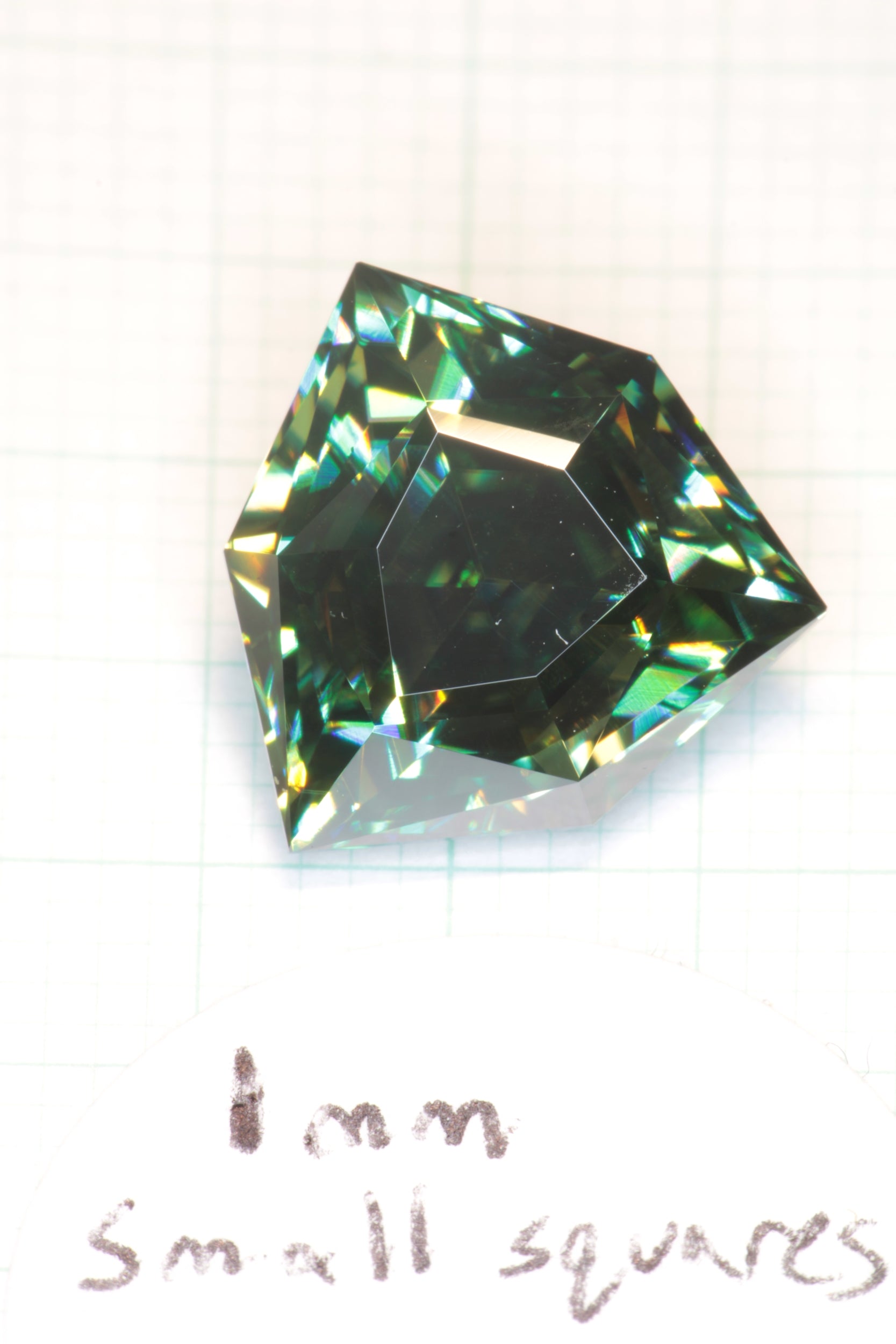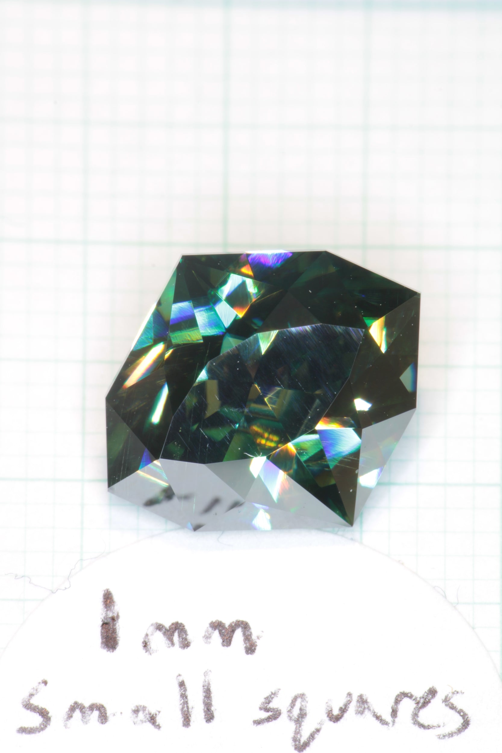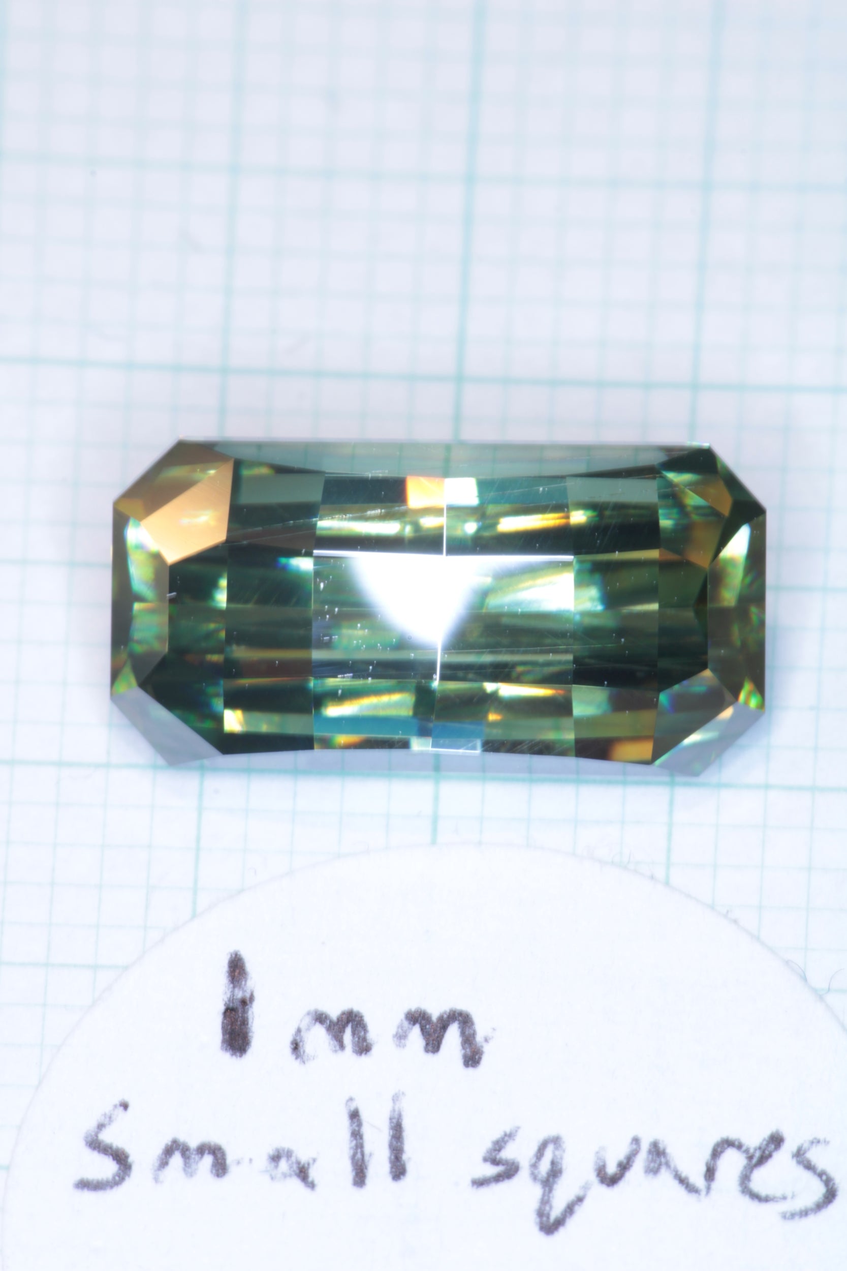 Though it is well known in the gem world it is also highly valued in the world of science and industry. It is a semiconductor just like pure silicon but far more durable and heat-resistant, so it is used to make computer chips that need to endure high stress environments like in a car engine. Fortunately for us these uses require very exacting standards and sometimes crystals are rejected. These crystals had growth defects and atmospheric contamination, resulting in hollow needles and carbon clusters which ruined them for semiconductor usage but left enough clean zones (after extensive trimming) to facet brilliant gems.