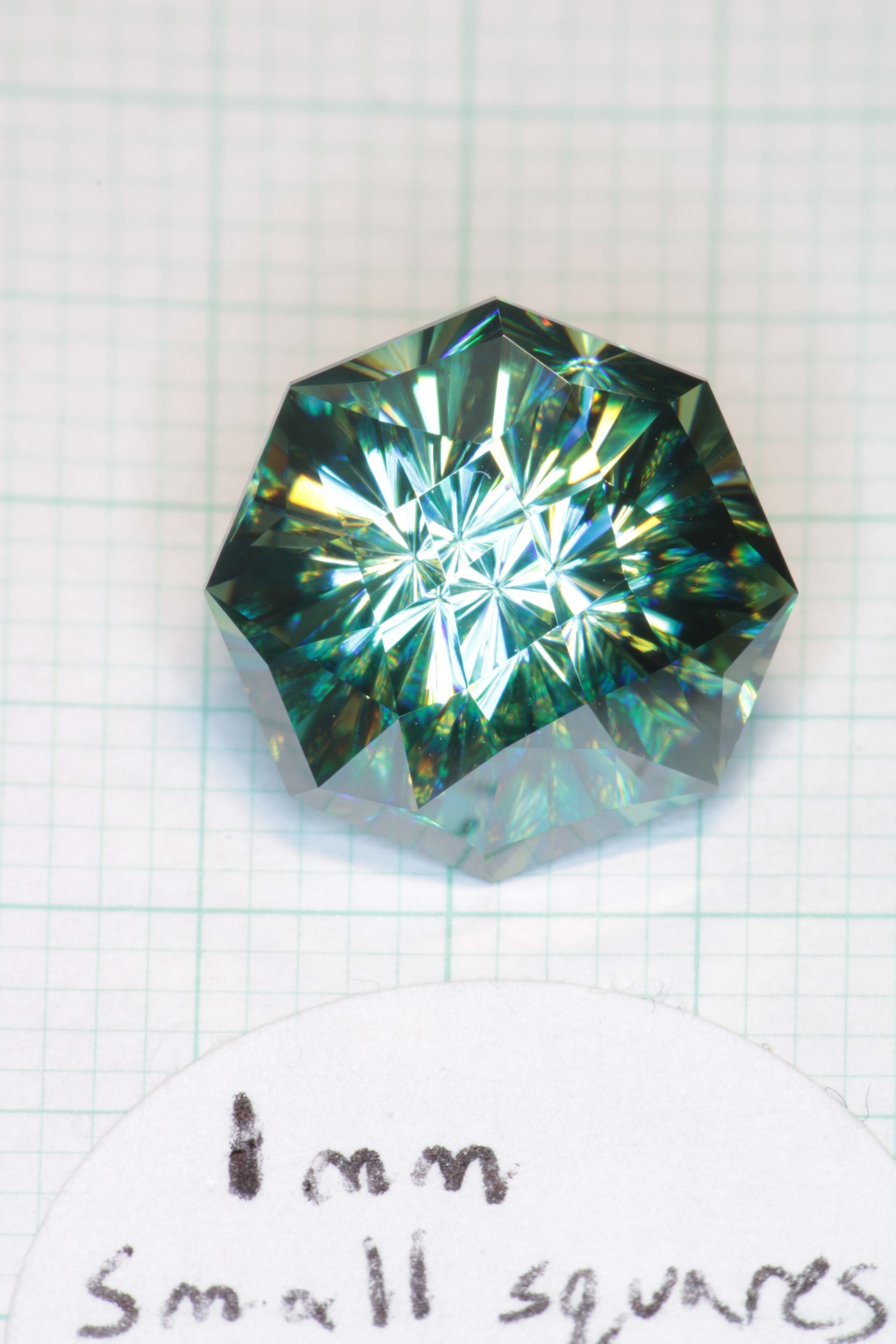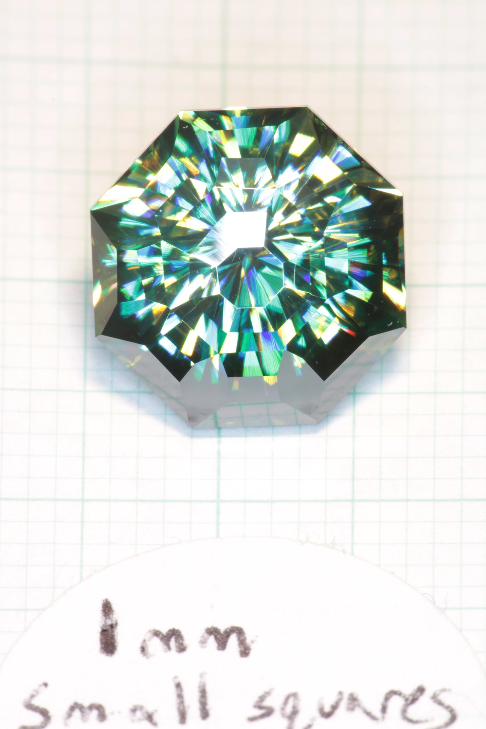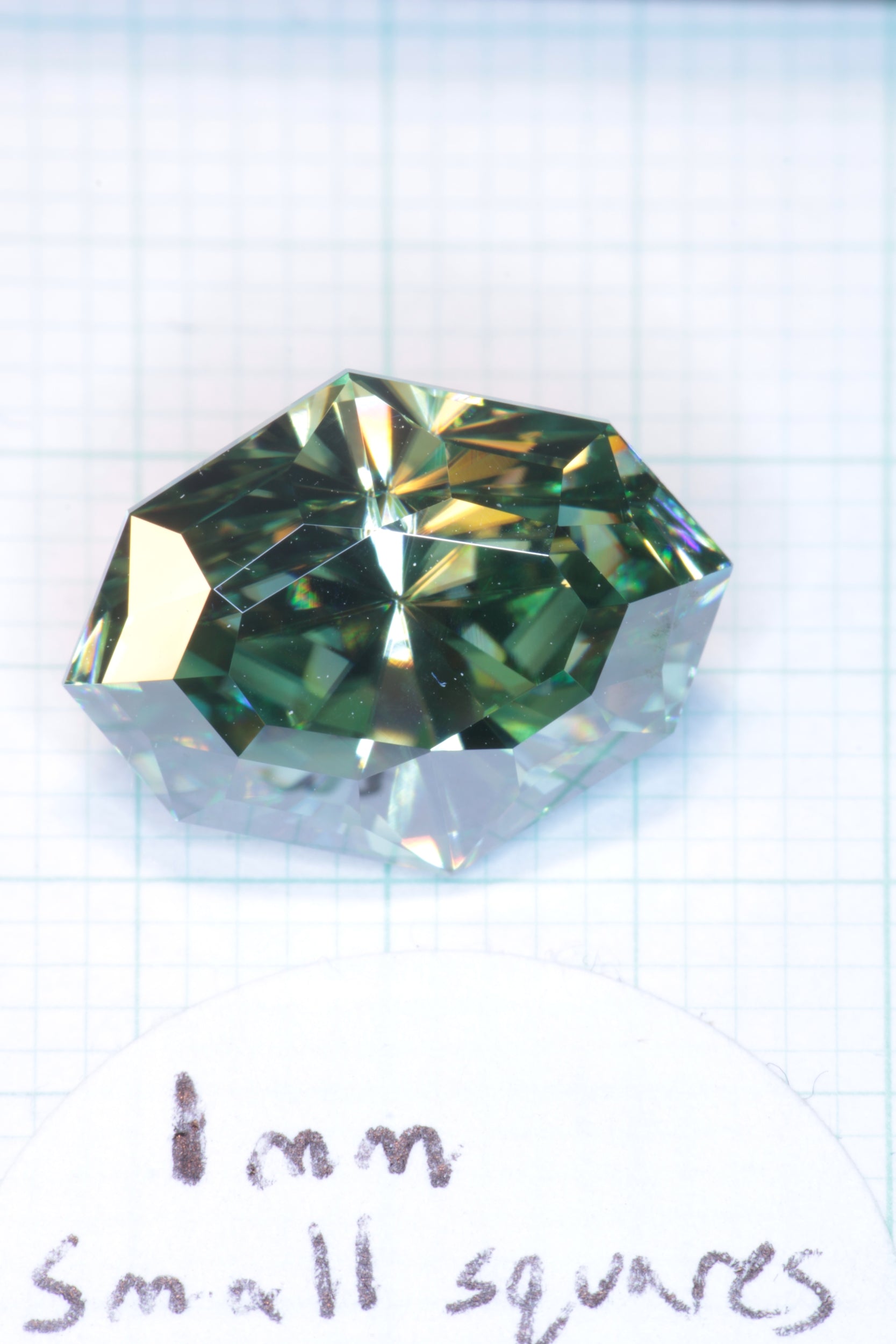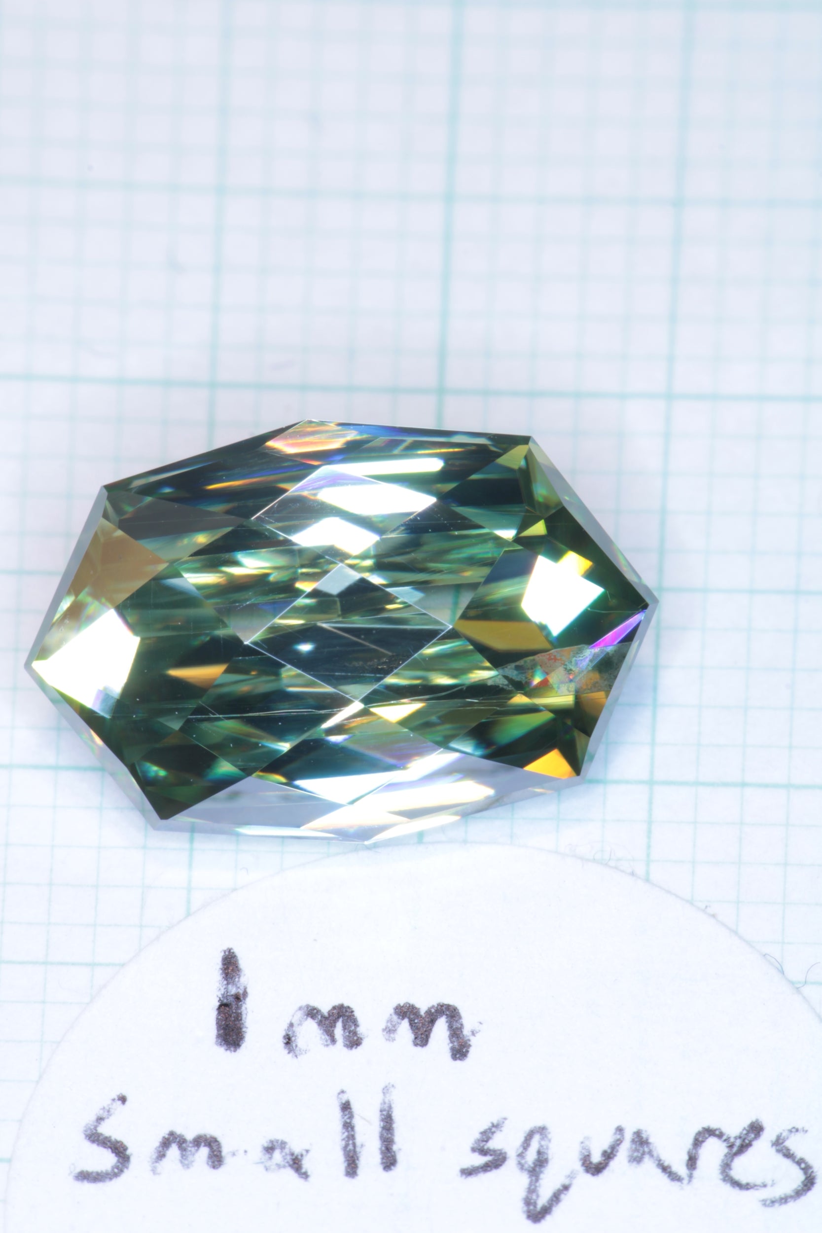 Though it is well known in the gem world it is also highly valued in the world of science and industry. It is a semiconductor just like pure silicon but far more durable and heat-resistant, so it is used to make computer chips that need to endure high stress environments like in a car engine. Fortunately for us these uses require very exacting standards and sometimes crystals are rejected. These crystals had growth defects and atmospheric contamination, resulting in hollow needles and carbon clusters which ruined them for semiconductor usage but left enough clean zones (after extensive trimming) to facet brilliant gems.