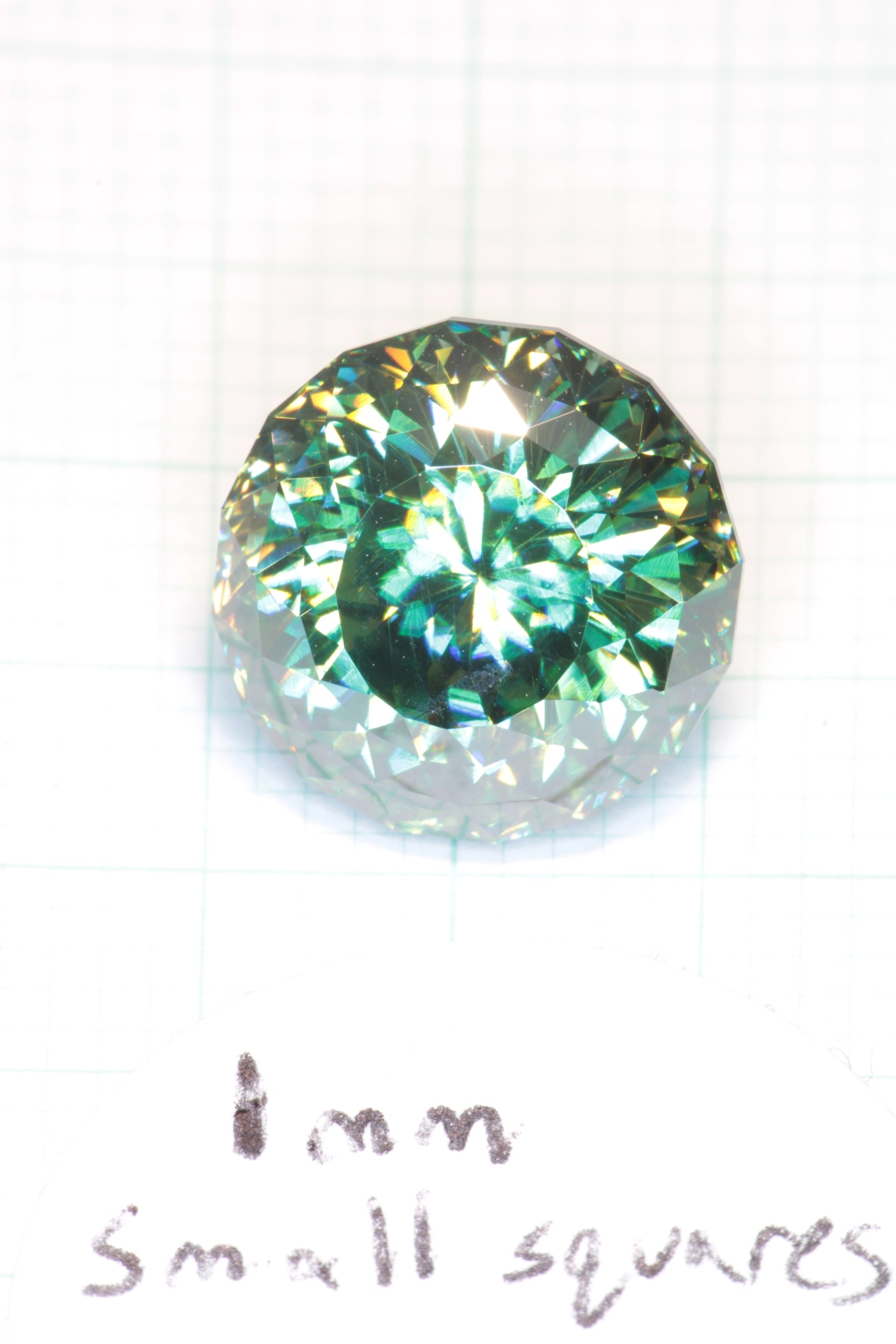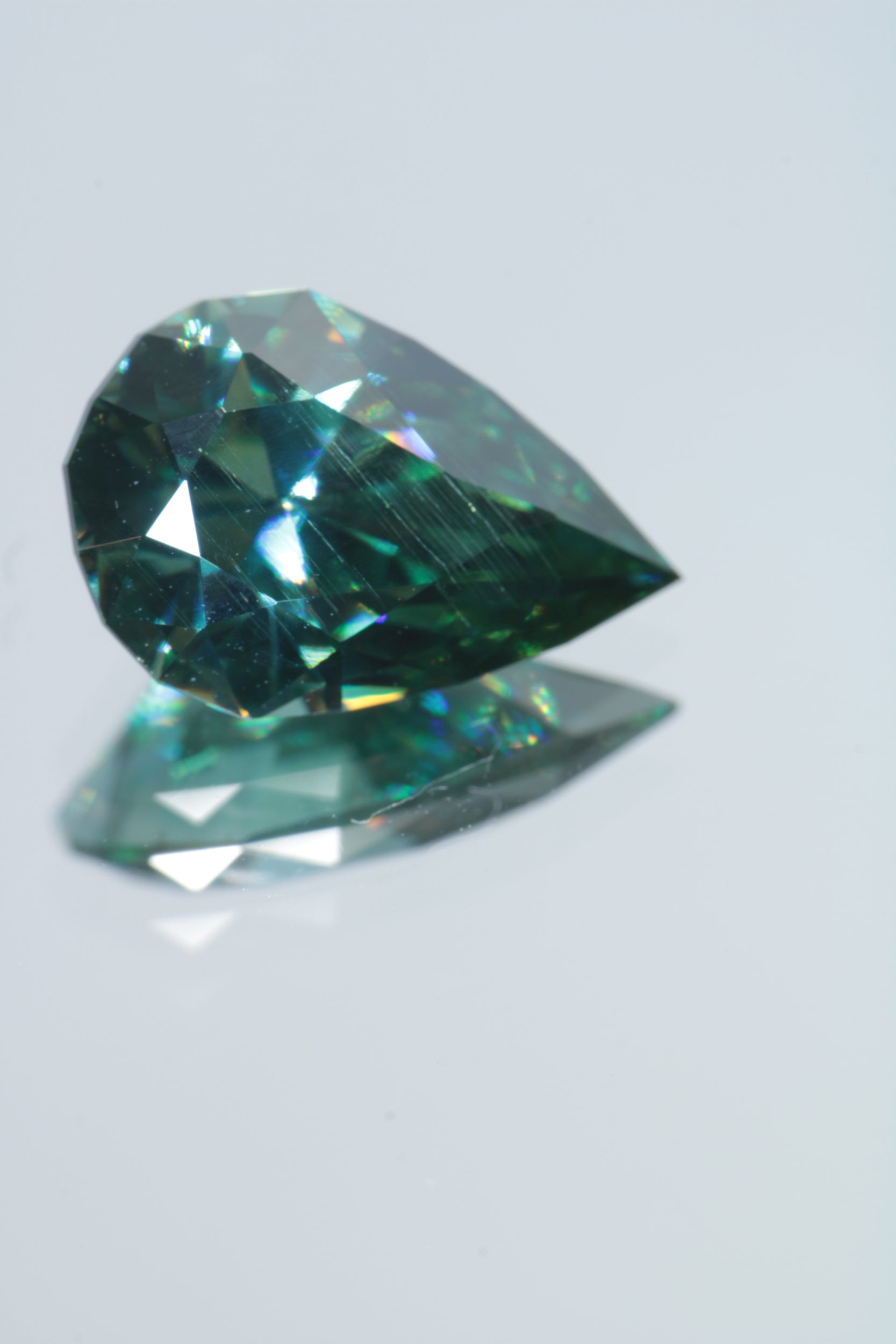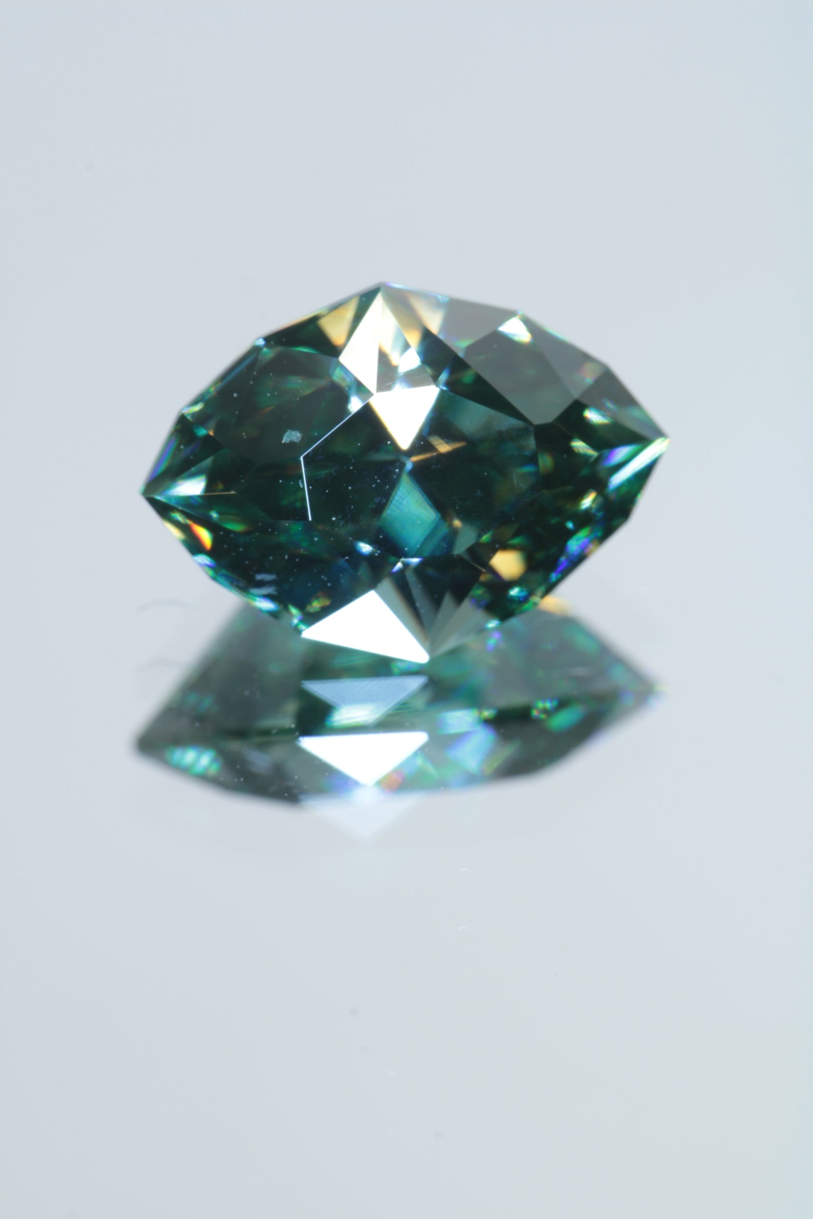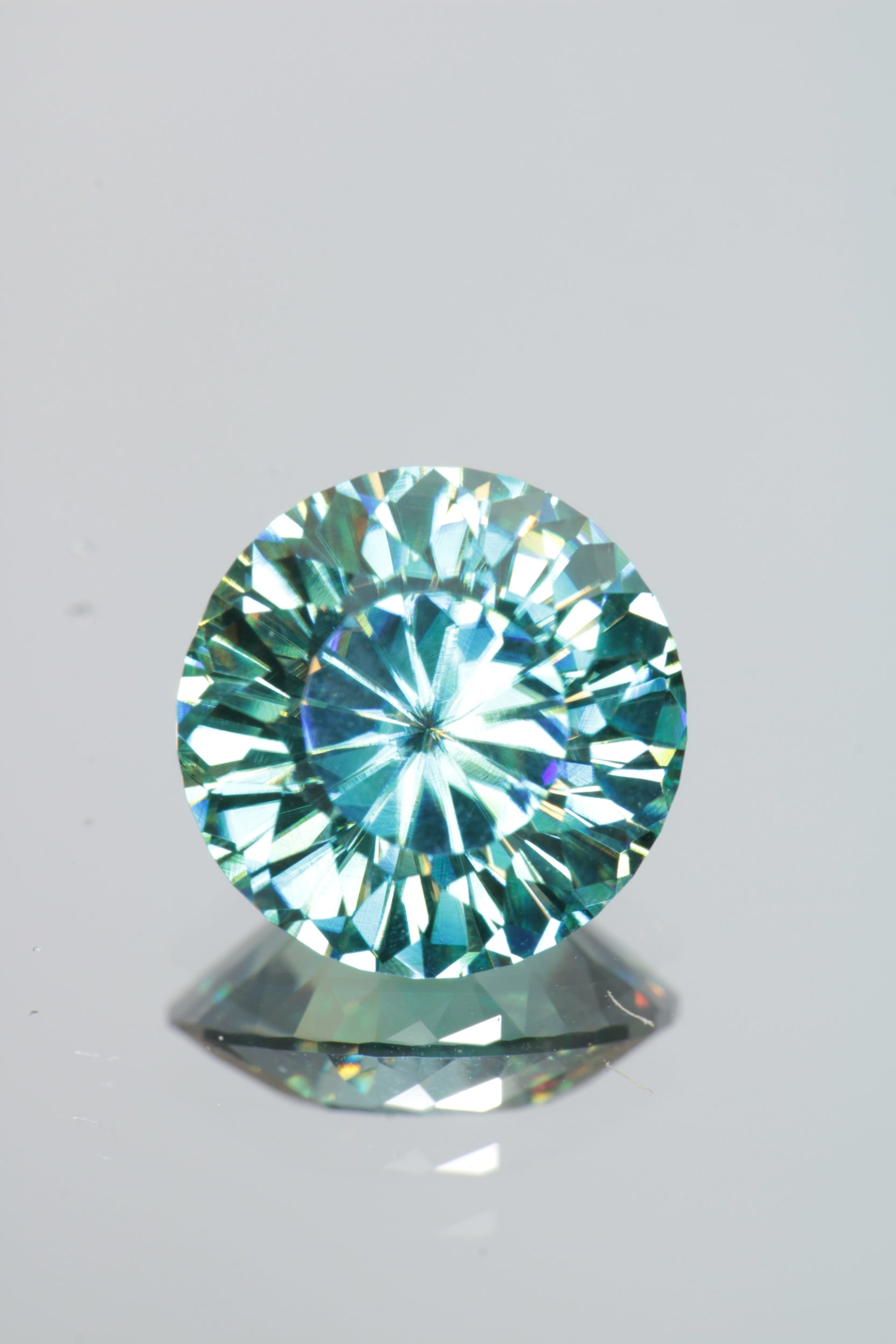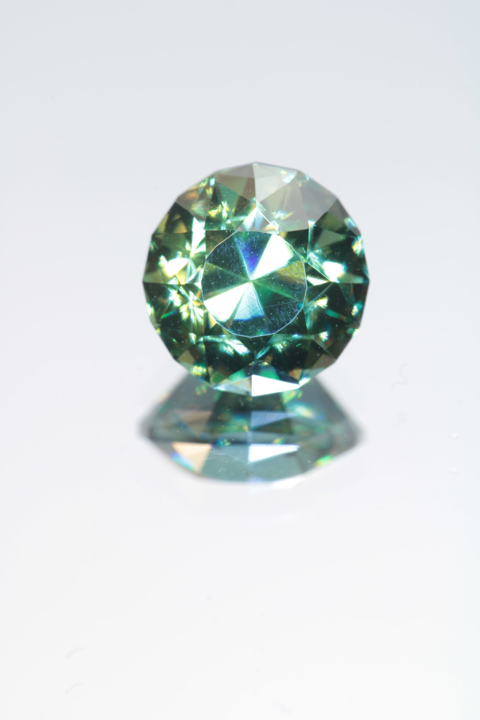 These are faceted dichroic yellow/blue moissanites--depending on the orientation of the cut they can show blue, yellow, sparks of both or a blend to green.