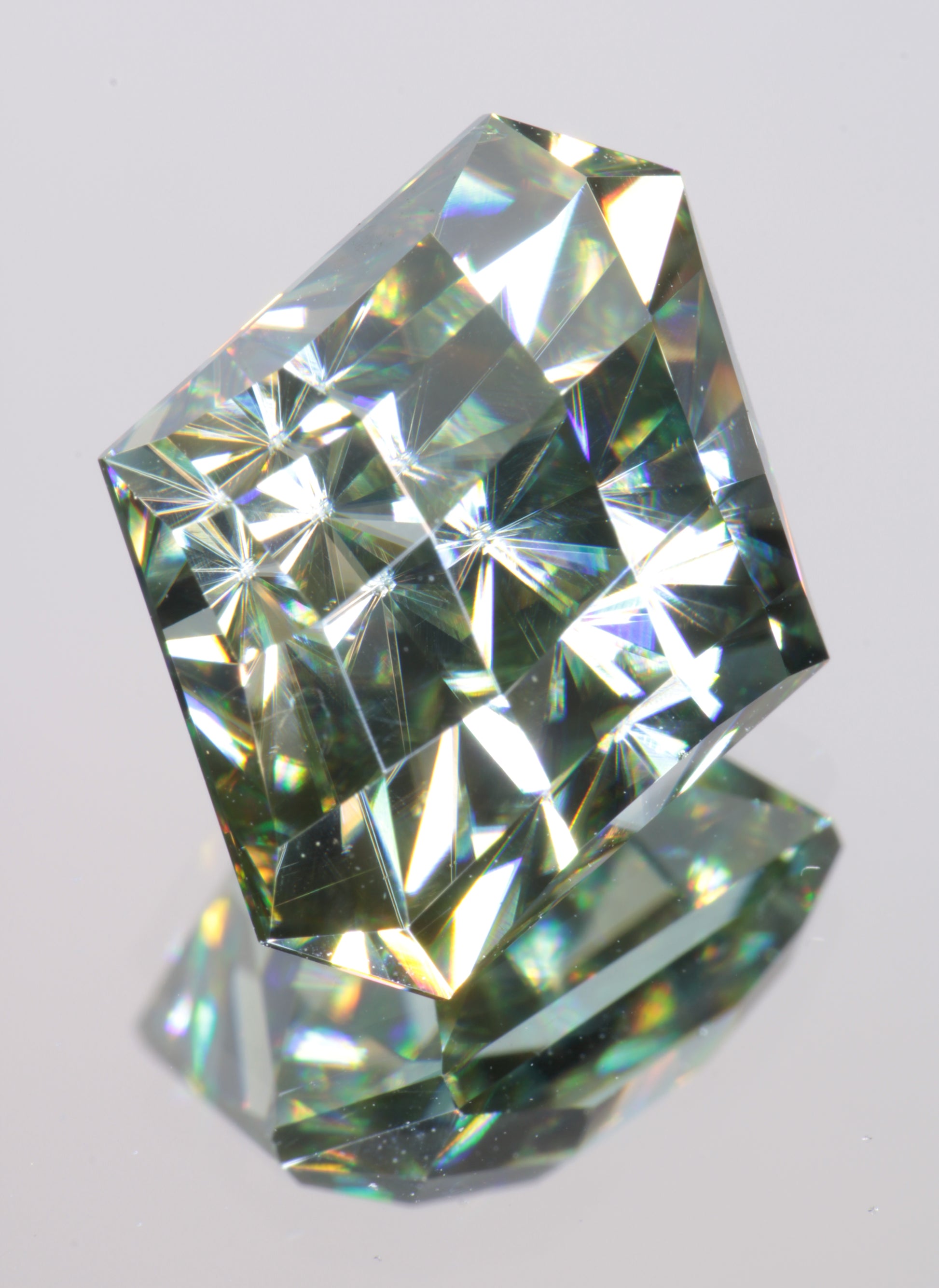Though the gem world sometimes thinks of it only as a diamond stand-in I prefer to think of it as a gem all its own. It has greater luster, more brilliance and fire and a cooler range of colors than diamonds do and I just find it more appealing visually.