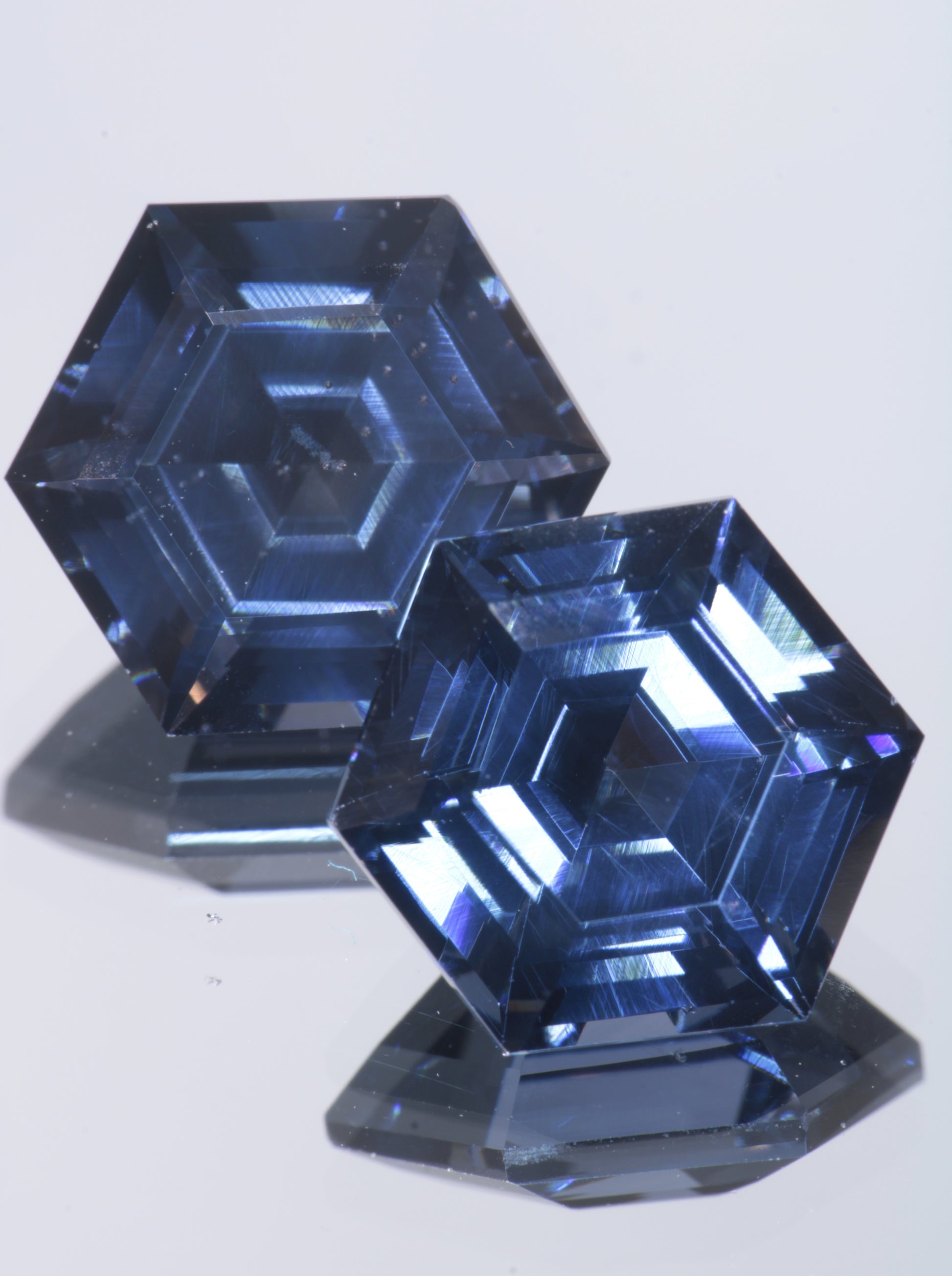 Cut stones are bright and very beautiful with a unique look. In addition, the purplish component (from the Nd-doping) will vanish under CFL bulbs, which can make the color of the stones shift to be a purer gray.