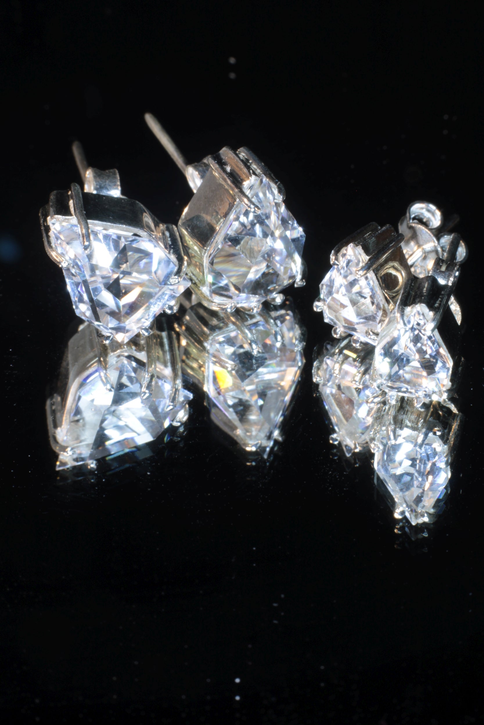 These are lab created sapphires which were grown for use as a sensor window in the F35 fighter jet but didn't quit5e meet spec. They've been faceted and set in solid sterling silver earrings!