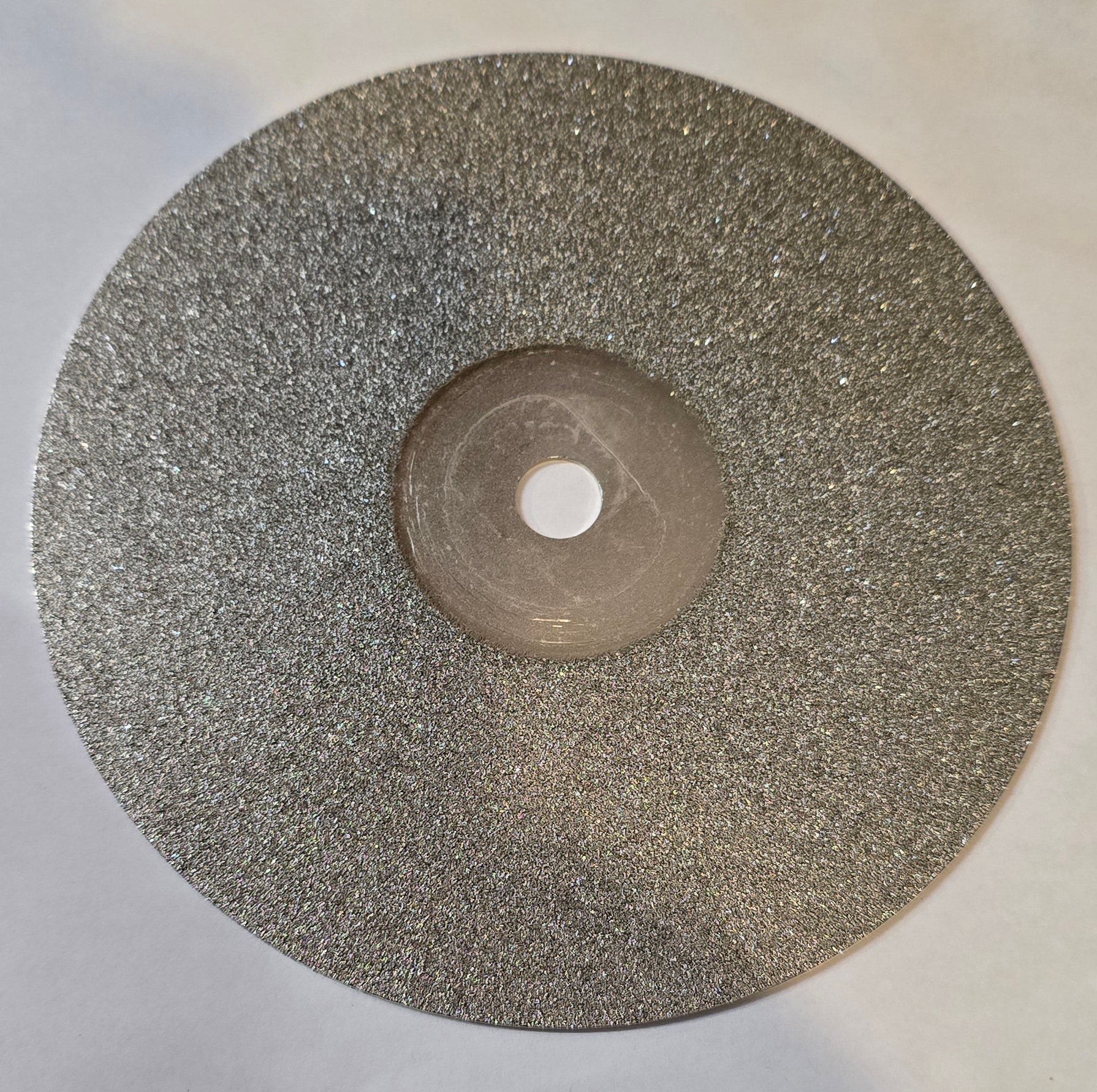 The 100 grit sintered lap is good for rough cutting, but cuts more like a 240. The 600 is great for final placement of facets and leaves an excellent surface for a fast prepolish. These laps can glaze over time and slow down (particularly when cutting large moissanites!)--I have run a 1000 grit whetstone over mine while spinning with a good water drip and that rapidly brought it back to its original speed