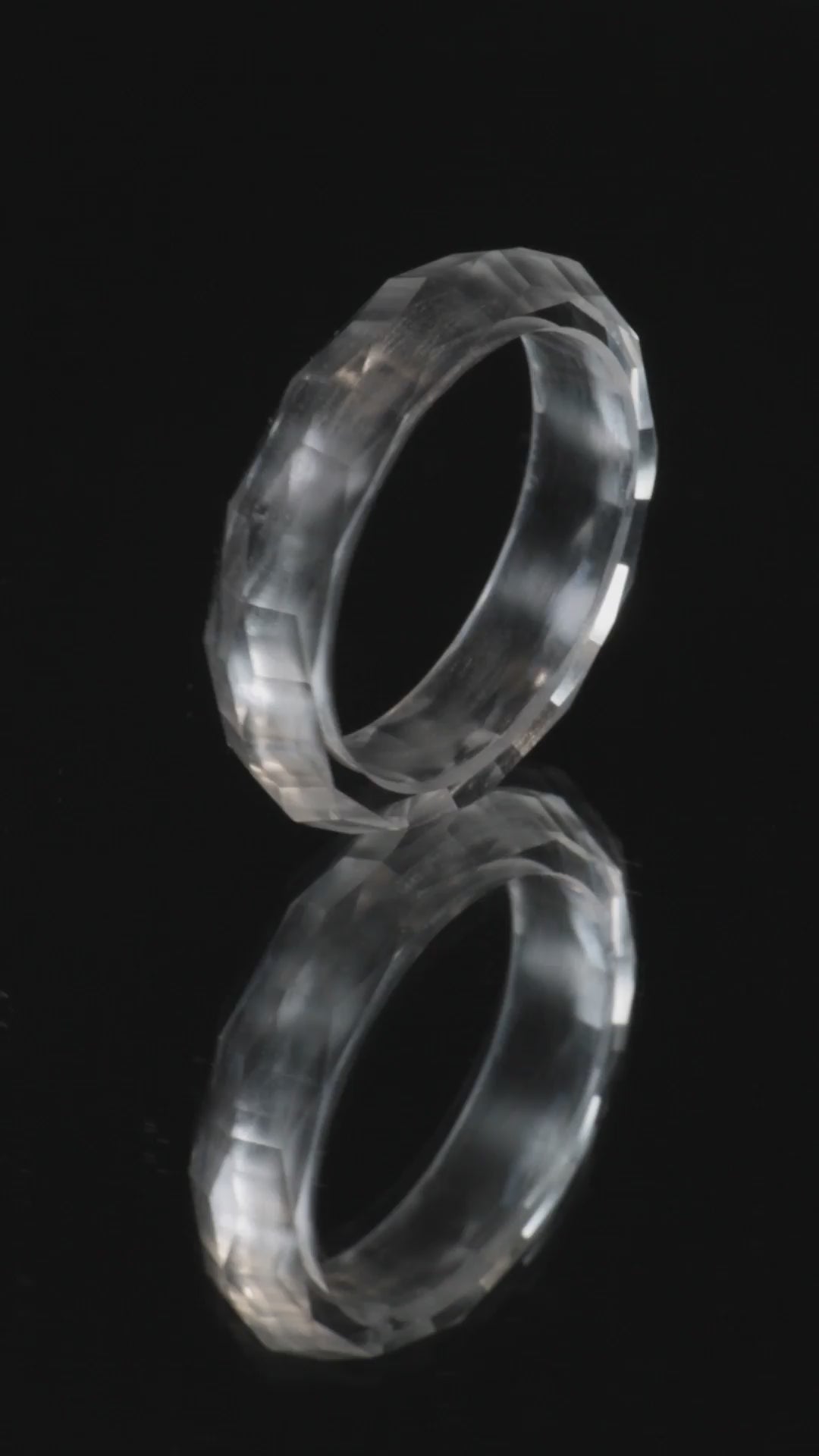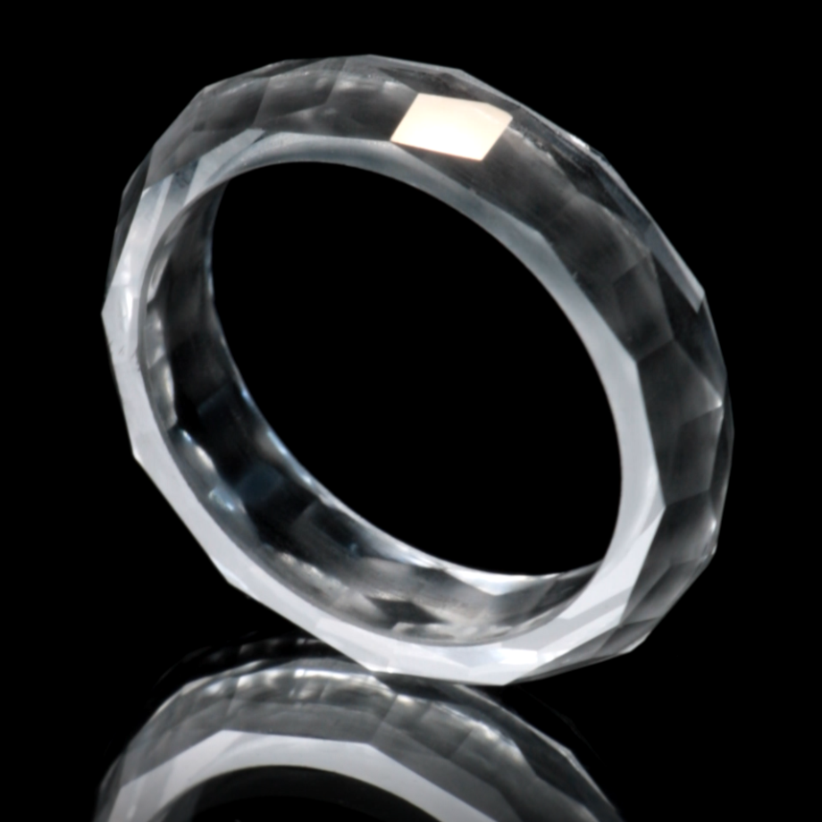 This is a lab created optical sapphire which I faceted into a single, solid gem ring. It weighs in at 19 carats and is size 10.5.