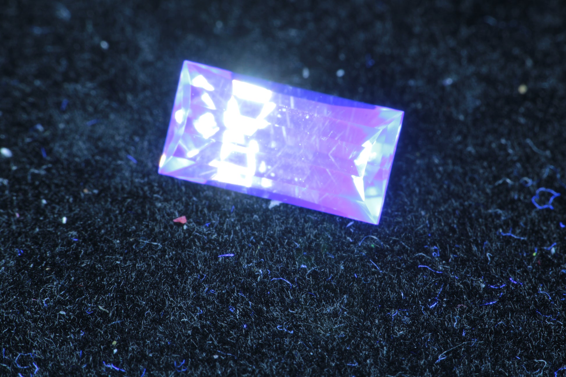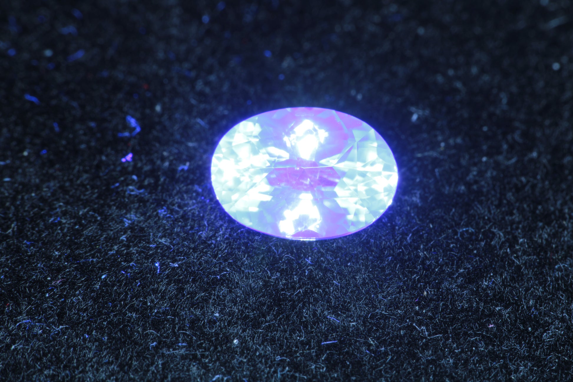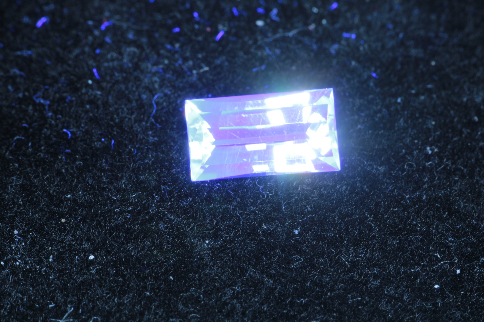 LYSO is a very unusual crystal grown for use in science and industry. It has a clear base and very strong blue fluorescence. It glows incredibly bright under UV light as well as higher energy radiation, and because of this it can be used to detect invisible gamma rays, xrays and even alpha rays. This type of LYSO has been optimized for ultra strong fluorescence with no afterglow (it does not glow in the dark, only with UV exposure). Its fluorescence is so strong it has a striking blue glow in sunlight--this effectively gives it a color change effect, since it looks colorless under room lighting and light purple-blue outdoors. It has a very interesting and unique look which you can't find anywhere else.