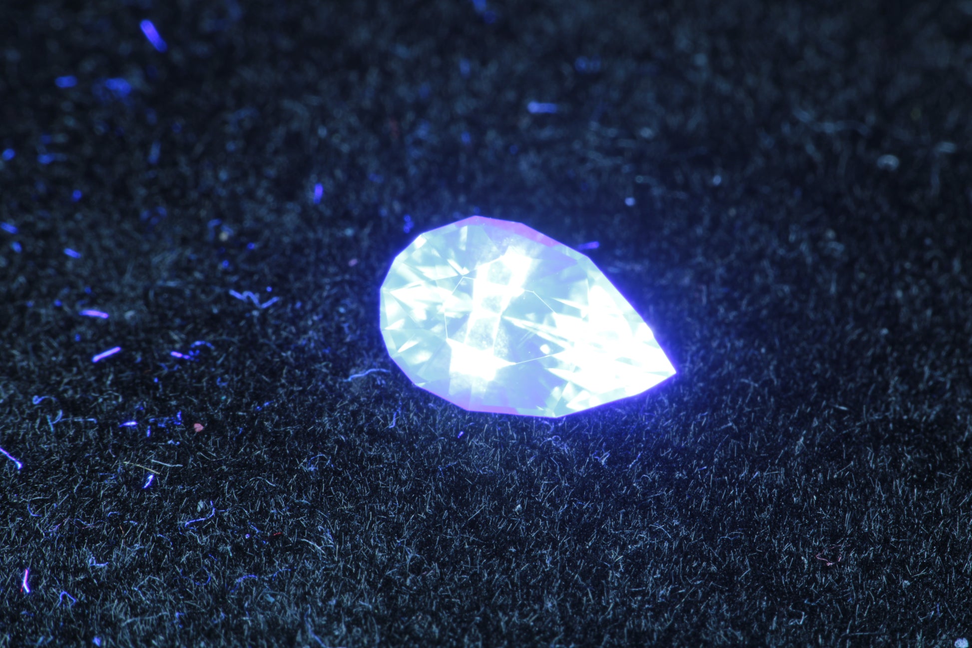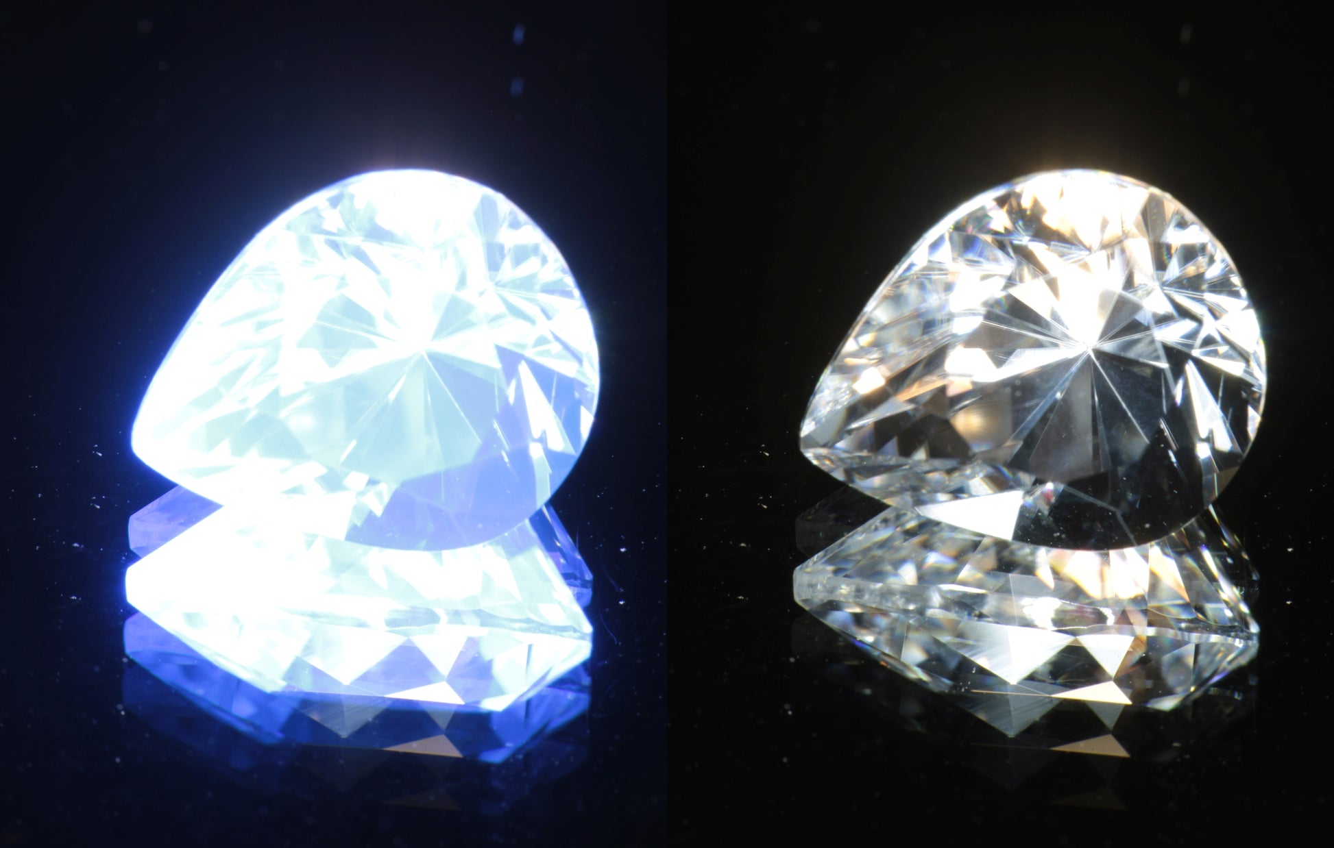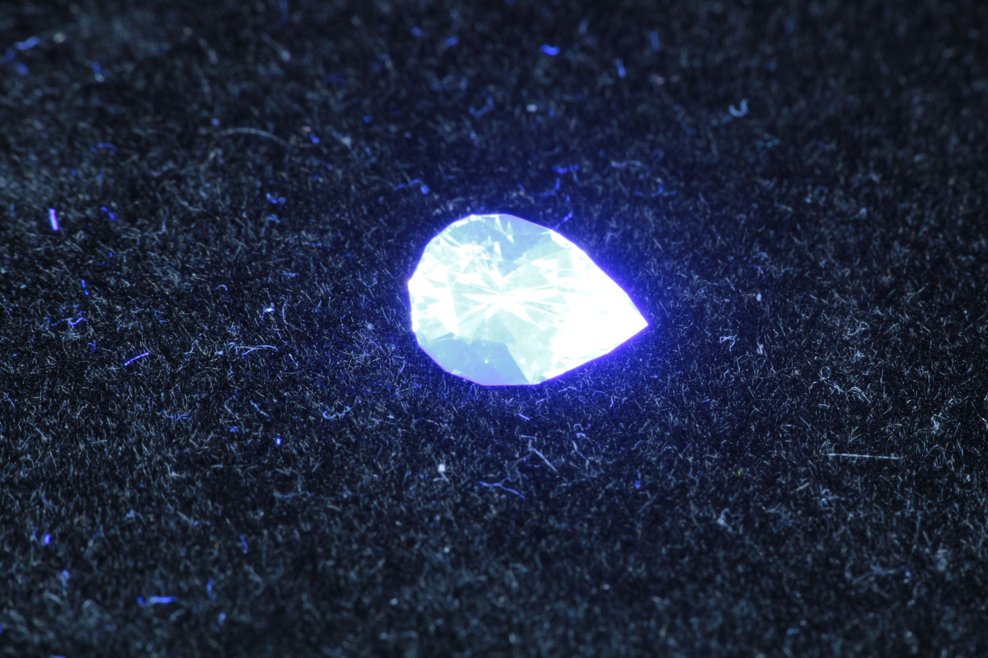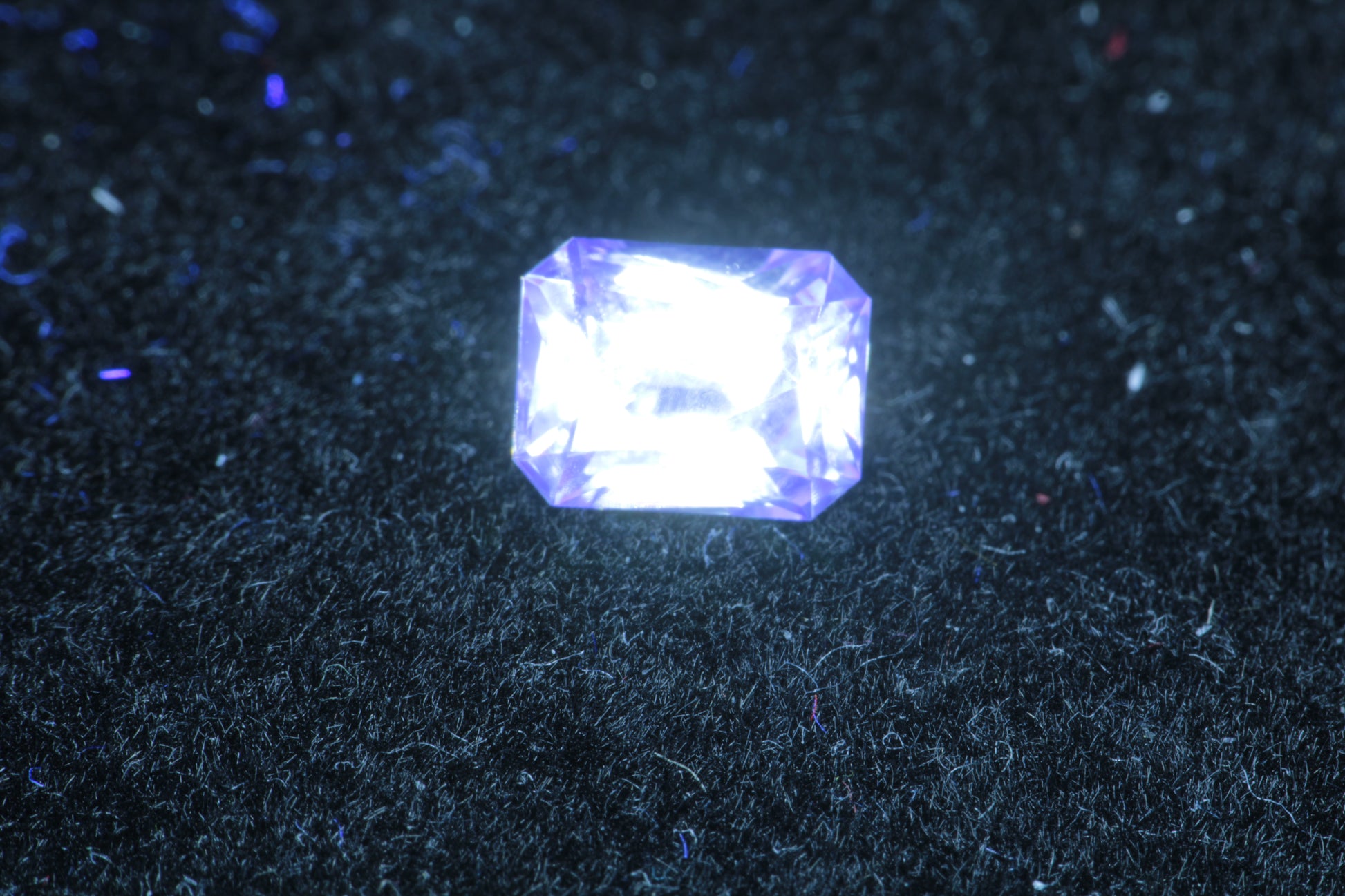 LYSO is a very unusual crystal grown for use in science and industry. It has a clear base and very strong blue fluorescence. It glows incredibly bright under UV light as well as higher energy radiation, and because of this it can be used to detect invisible gamma rays, xrays and even alpha rays. This type of LYSO has been optimized for ultra strong fluorescence with no afterglow (it does not glow in the dark, only with UV exposure). Its fluorescence is so strong it has a striking blue glow in sunlight--this effectively gives it a color change effect, since it looks colorless under room lighting and light purple-blue outdoors. It has a very interesting and unique look which you can't find anywhere else.