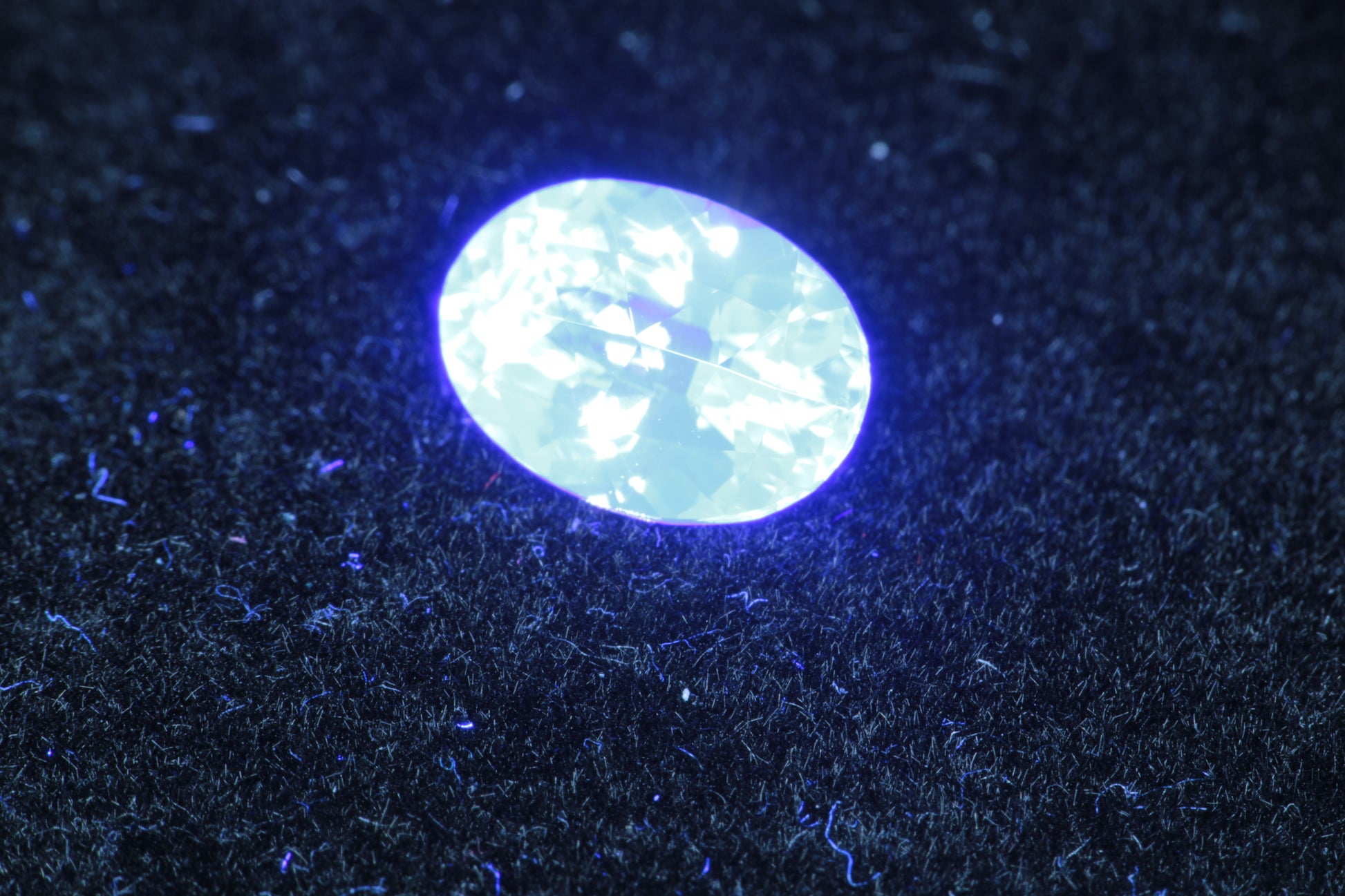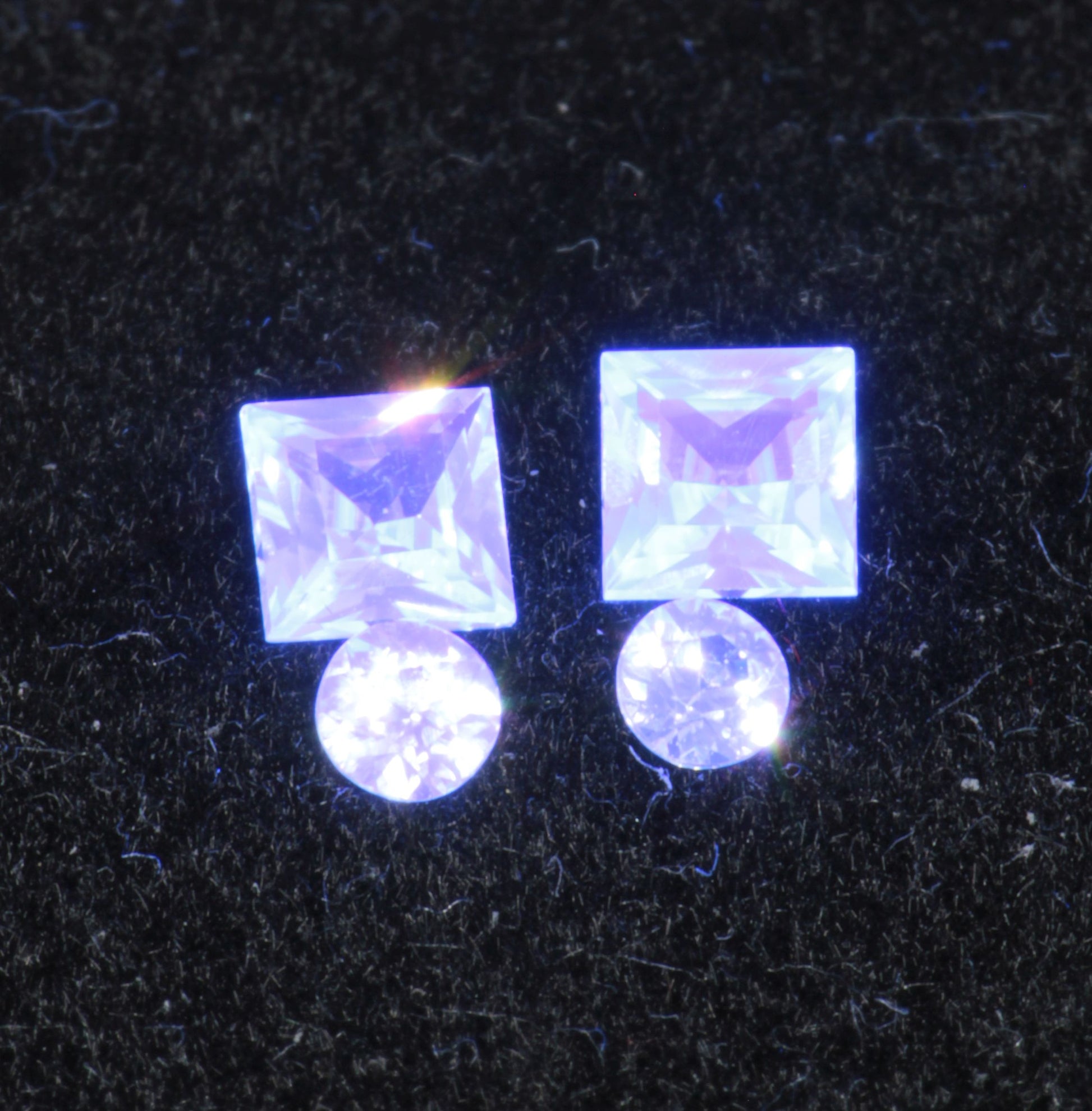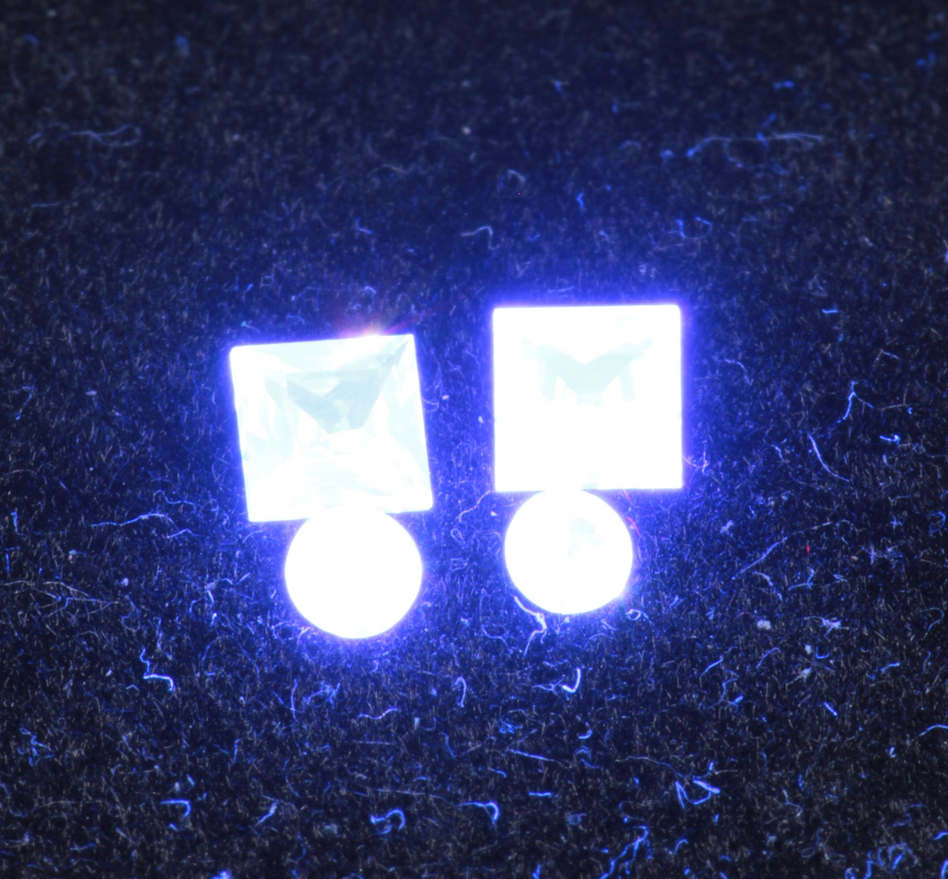 These are loose calibrated faceted stones of LYSO (Lutetium Yttrium Oxyorthosilicate). All show bright blue fluorescence strong enough to give them a full color change to light blue in direct sunlight. Some also have a mild afterglow, showing a blue glow after exposure to UV which can be seen in cupped hands.