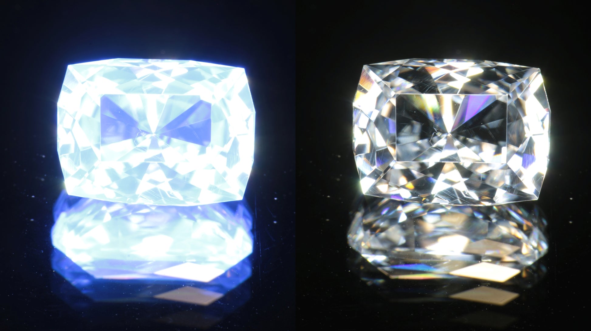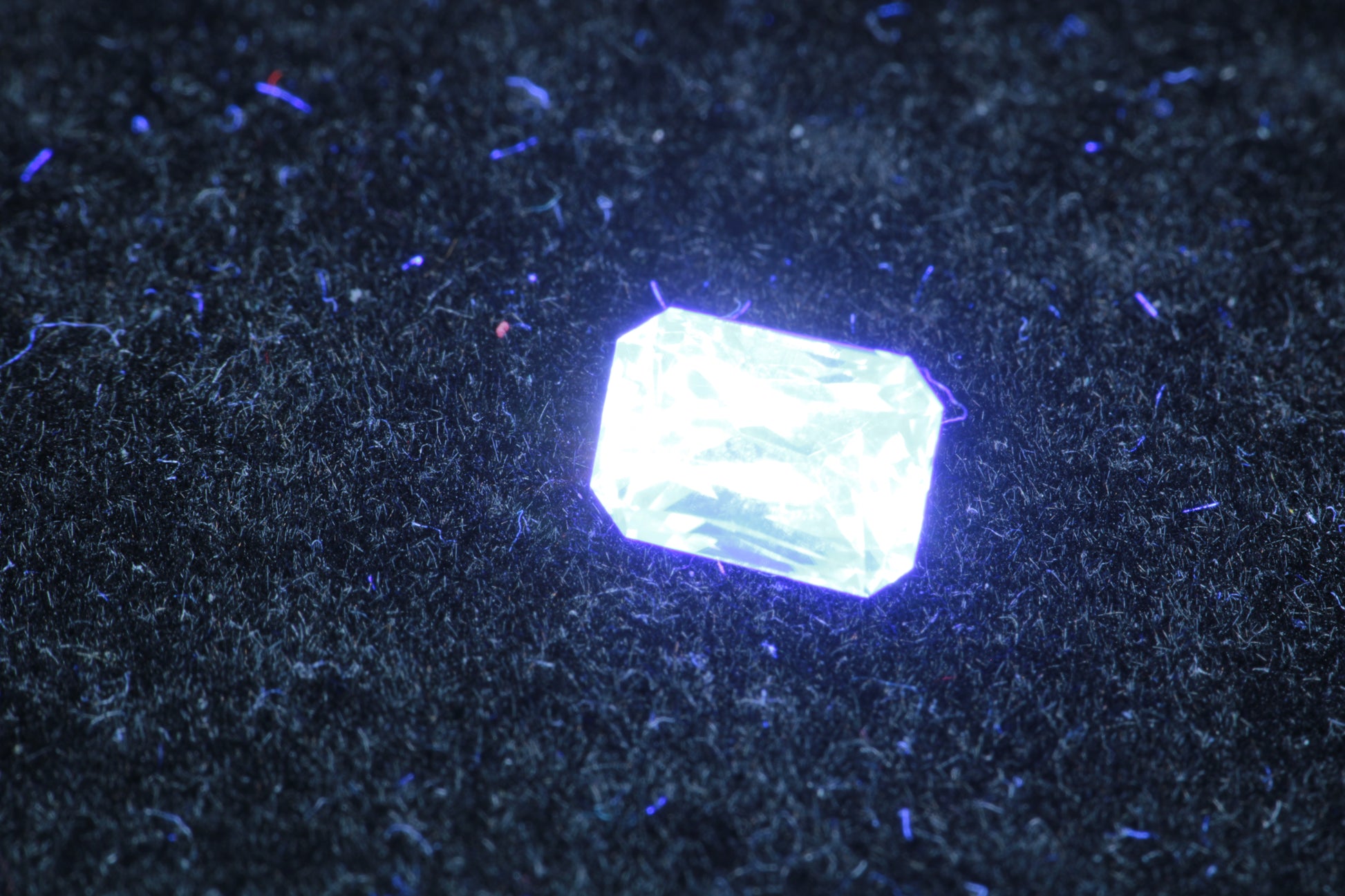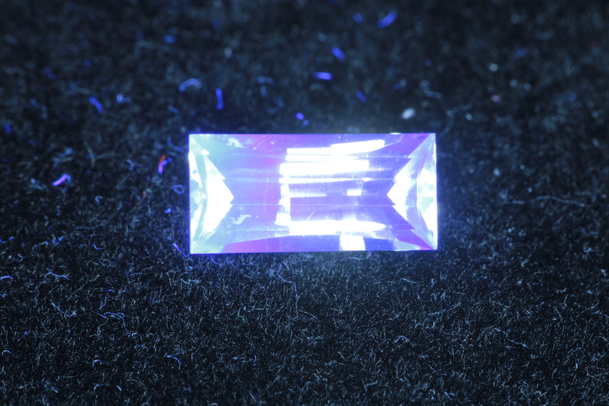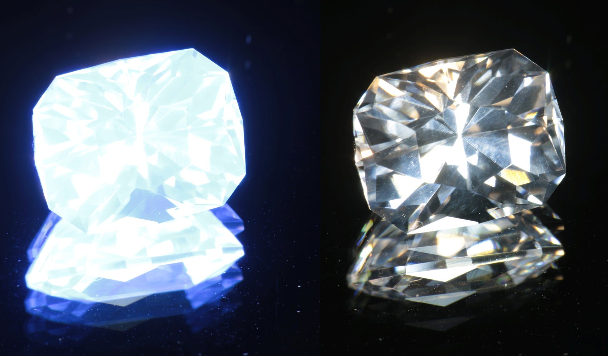 These are loose calibrated faceted stones of LYSO (Lutetium Yttrium Oxyorthosilicate). All show bright blue fluorescence strong enough to give them a full color change to light blue in direct sunlight. Some also have a mild afterglow, showing a blue glow after exposure to UV which can be seen in cupped hands.