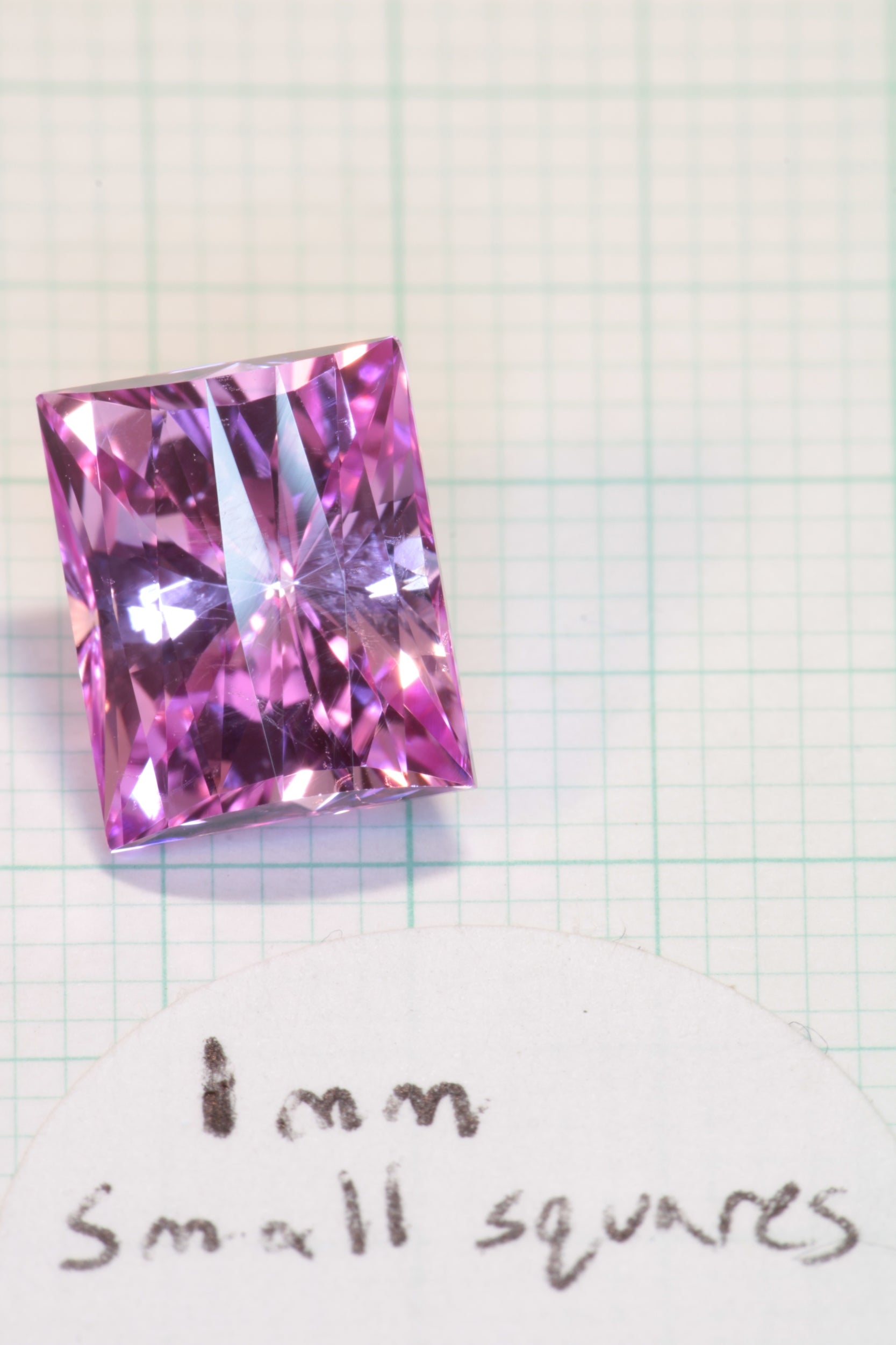 This material cuts super bright, neon pink stones with a ton of scintillation and super bright fluorescence which gives them an extra pop. They are great for any lover of science, fluorescence or the color pink!
