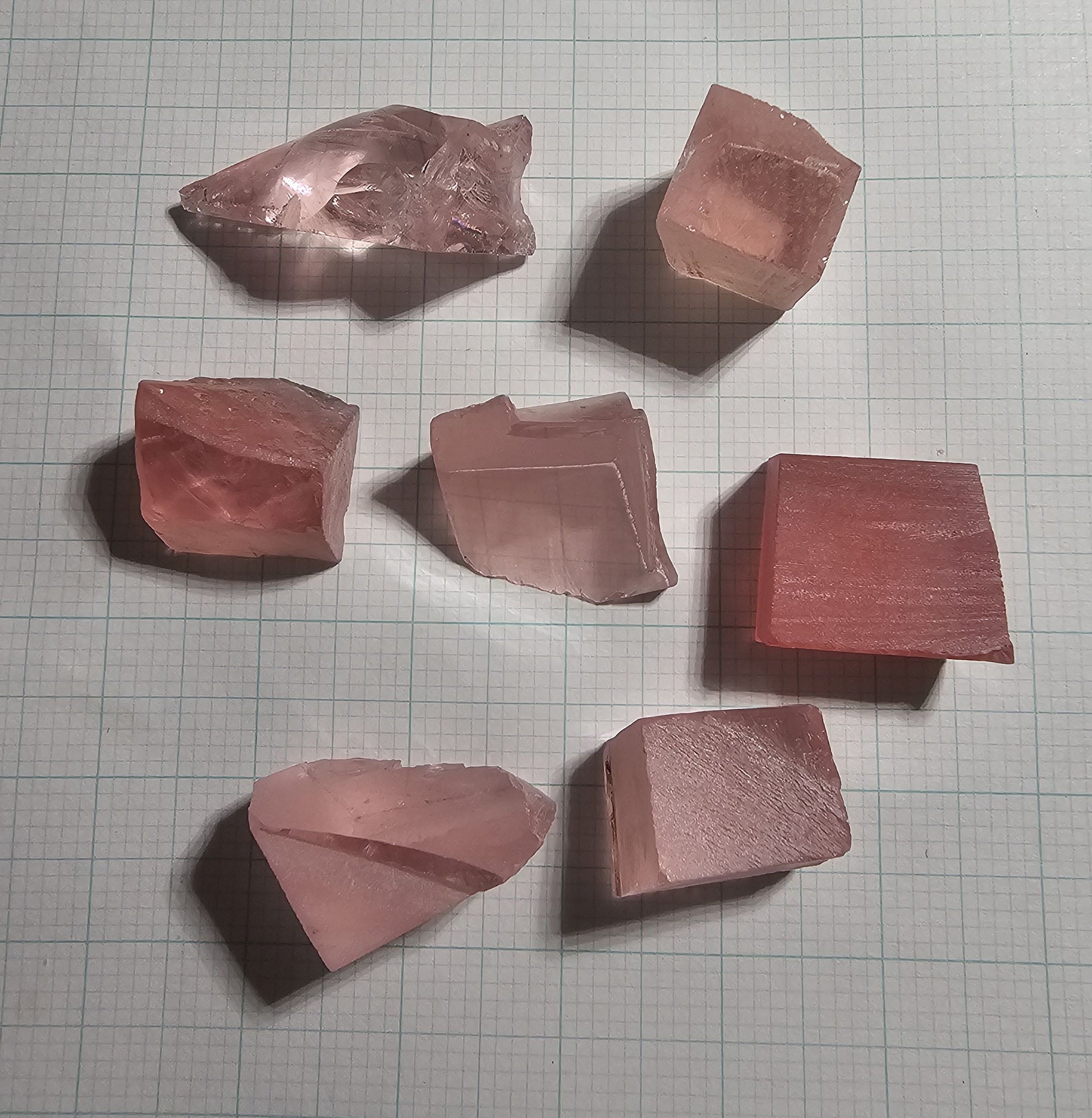 The color of these pieces varies because the rind has a darker slightly orange-red color which fades into a Starburst-pink color in the center. This gives a nice range of options. Some stones have a thin black rind which will need to be ground off, but it is very thin and tends to have the richest color right beneath it.