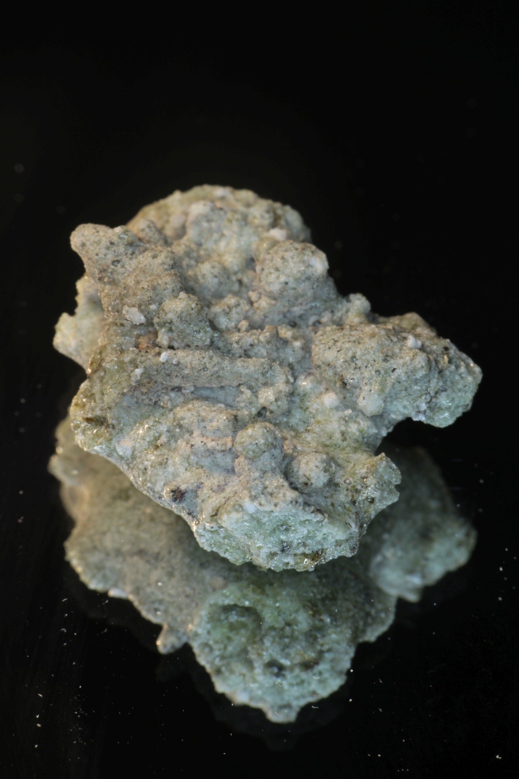 These are specimens of Trinitite, glass formed from the earth when the Trinity nuclear test was conducted, marking the beginning of the nuclear age. They aren't radioactive anymore but each is a small piece of history. They have a very unusual and distinctive appearance with a green color and odd grainy structure, and their shape reflects the force that formed them. Trinitite is no longer available for collecting so all that's available is what's in old stock and collections--we got these from a friend of ours in the mineral business. They range from about 0.3-1g.